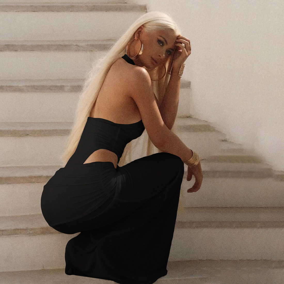 Trendy Features: Solid color, open-back design