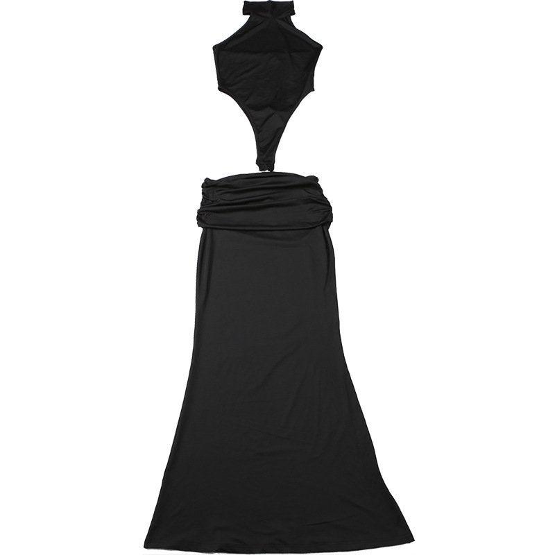 New European And American Womens Sexy Halter-neck Bodycon Jumpsuit And Solid-color Skirt Set