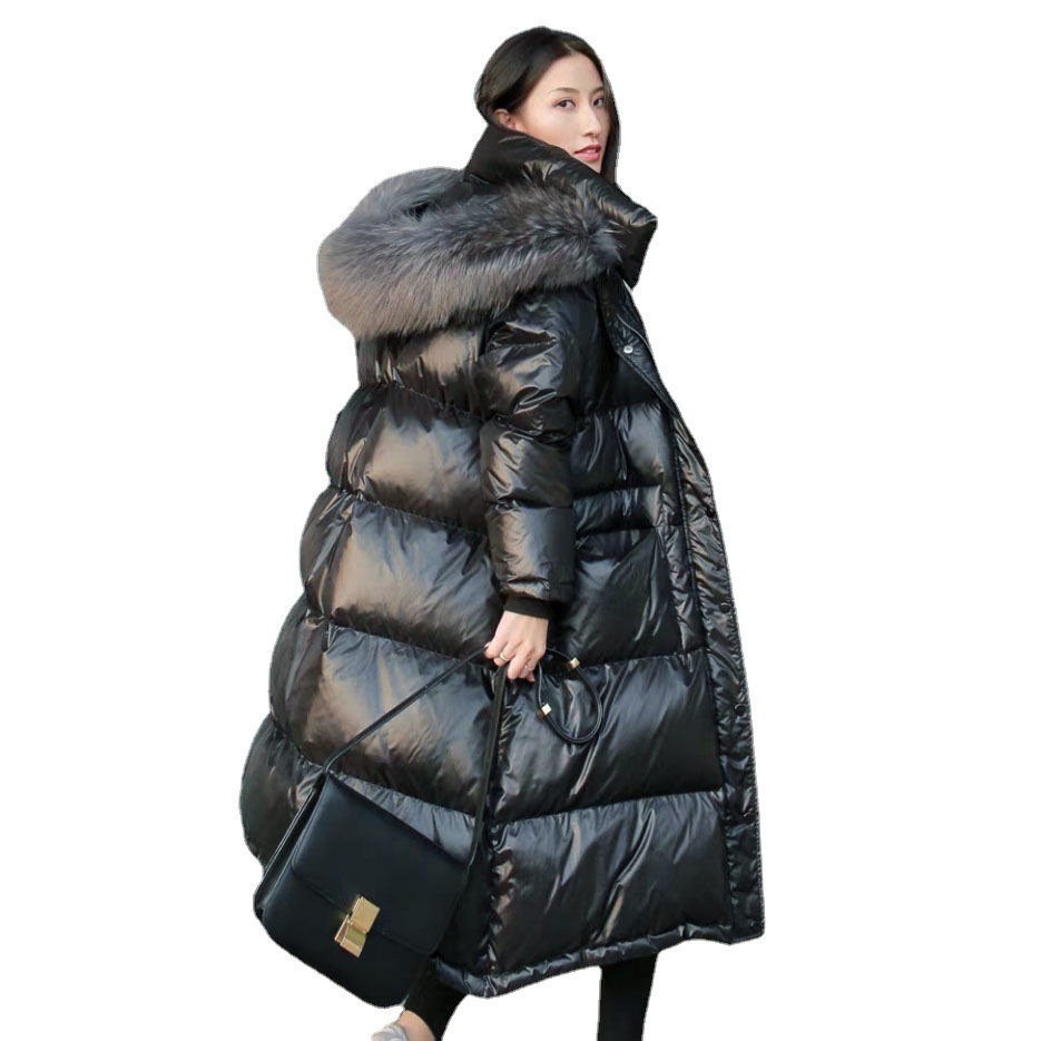 Color: black[with grey real raccoon fur collar], black[with black imitation fur collar], black[naked clothes without fur collar]