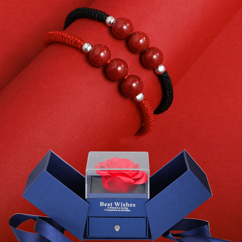 Color classification: Red rope, one bead anklet, black rope, one bead, anklet, a pair of lovers (one bead), anklet, red rope, 3 beads, anklet, black rope, 3 beads, anklet, a pair of lovers (3 beads), A pair of couples (3 beads) anklet + rose gift box