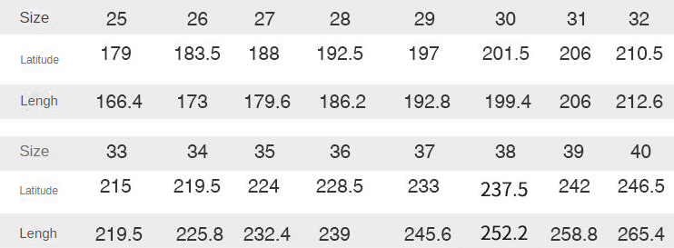 Size: 25, 26, 27, 28, 29, 30, 31, 32, 33, 34, 35, 36, 37, 38, 39, 40