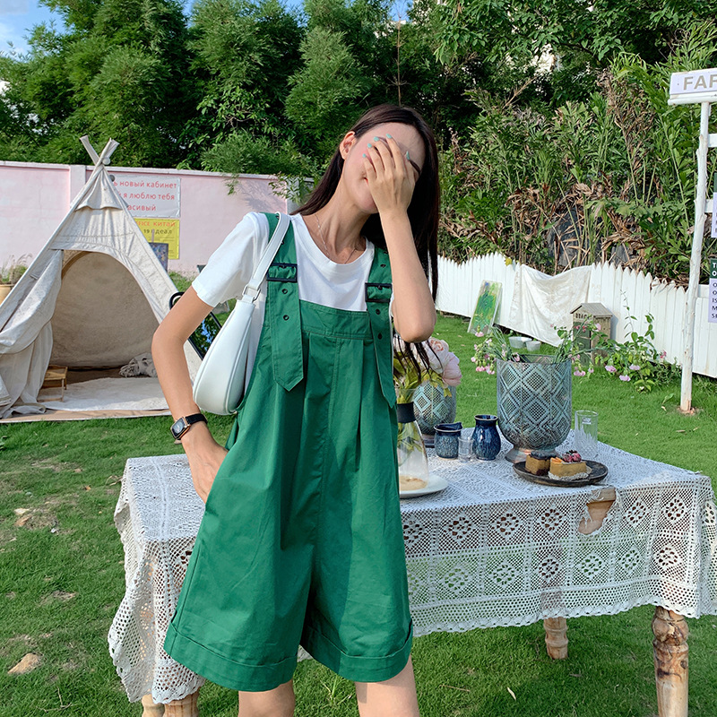 Color: green overalls, khaki overalls, khaki suits, green suits