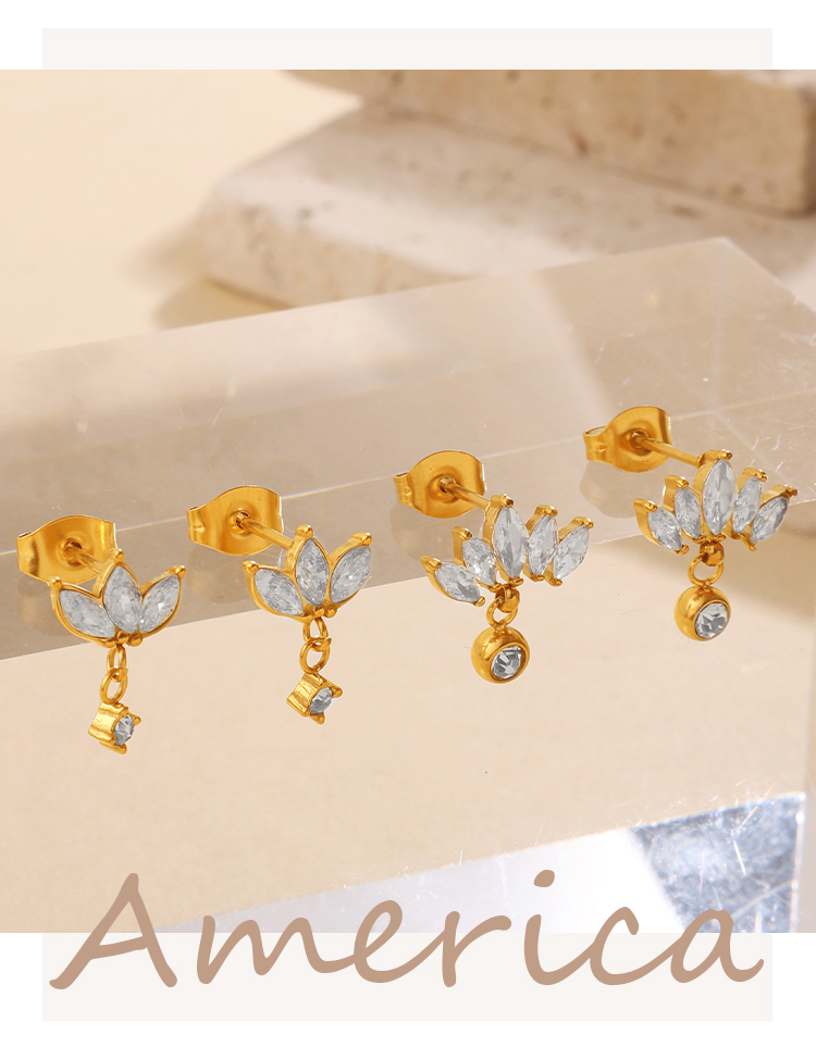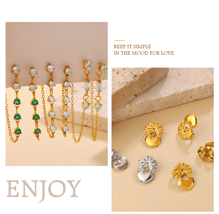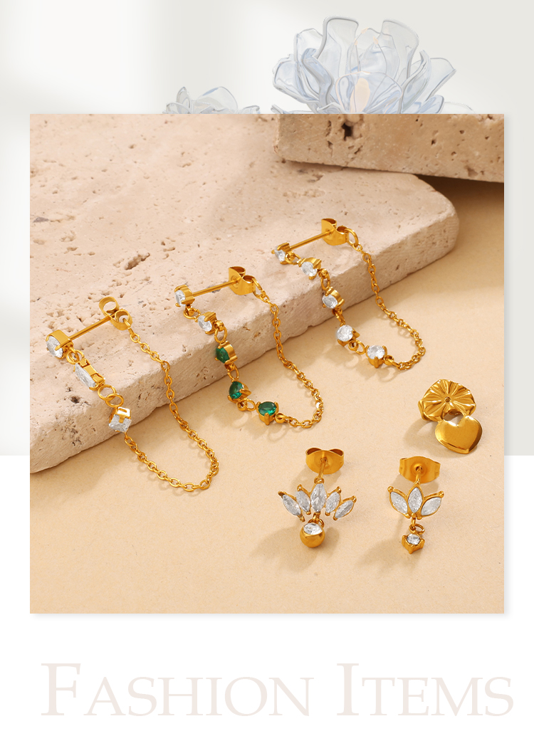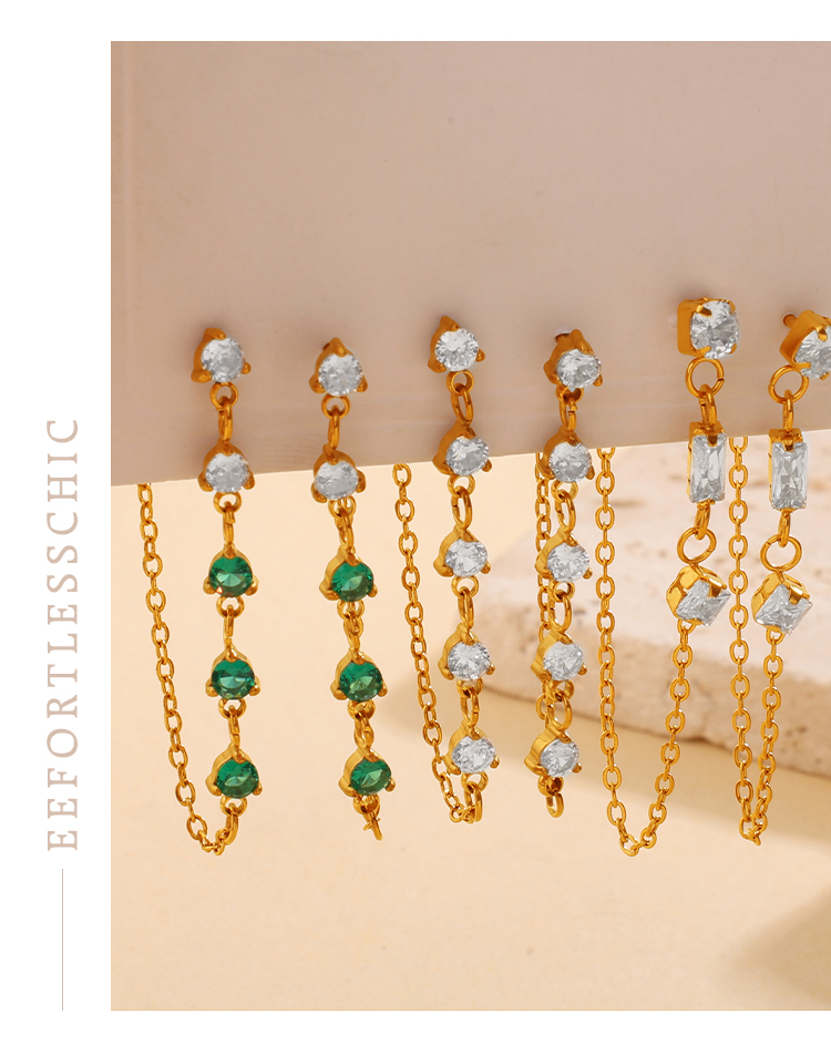 New Fashion Luxury Design Zircon Inlaid Pendant Earrings, Stainless Steel, Korean & Japanese Style Chain Tassel Ear Jewelry