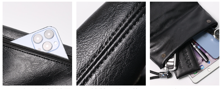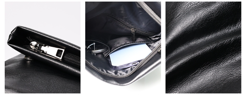 Package internal structure: zipper concealed pocket, cell phone pocket