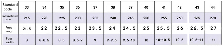 Sizes 34, 35, 36, 37, 38, 39, 40, 41, 42, 43, 44, 31, 33, 32