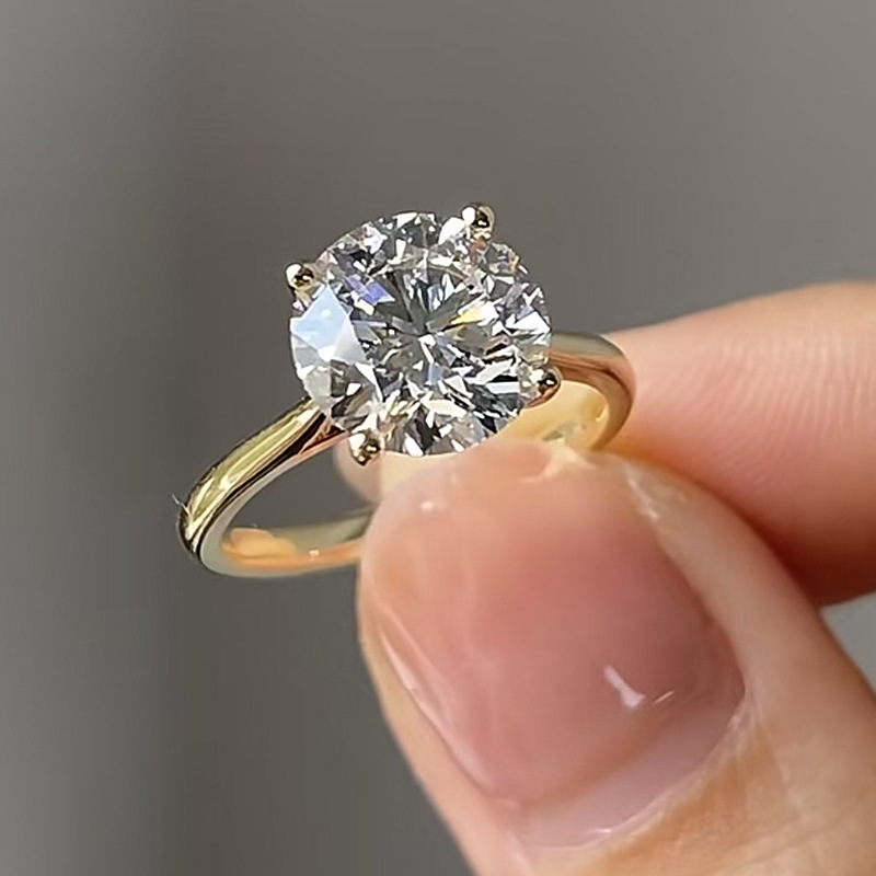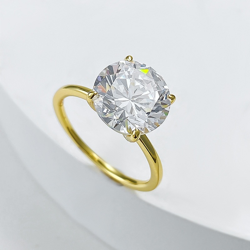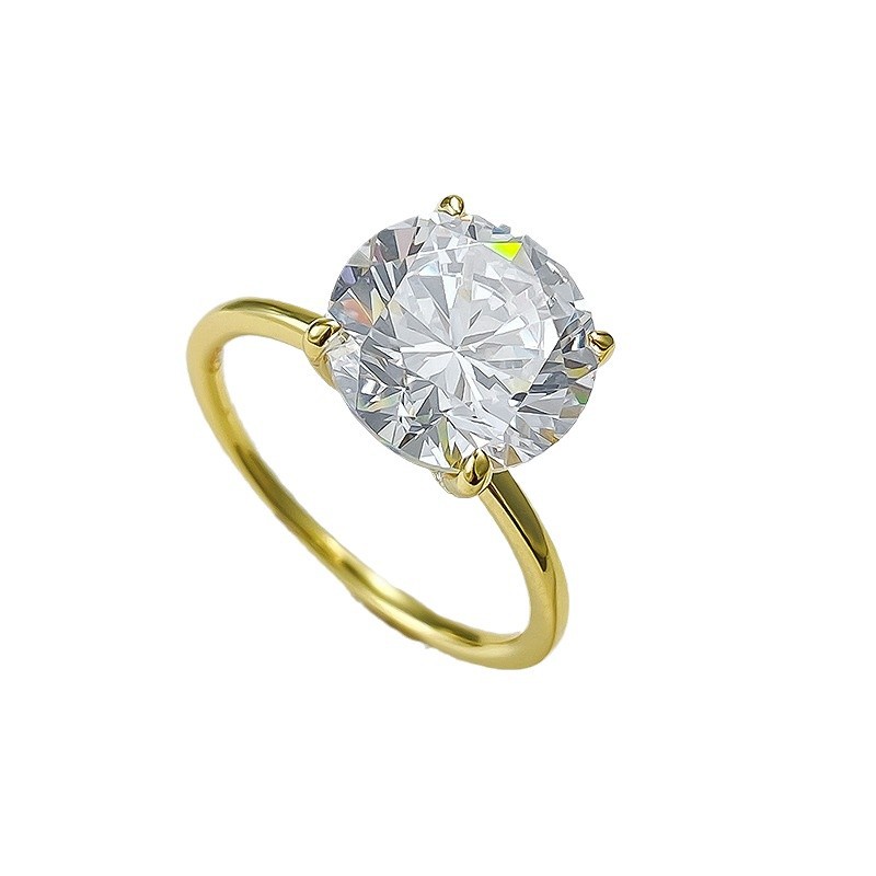 New Four-claw 10.0 Round S925 Silver High Carbon Diamond Ring For Women