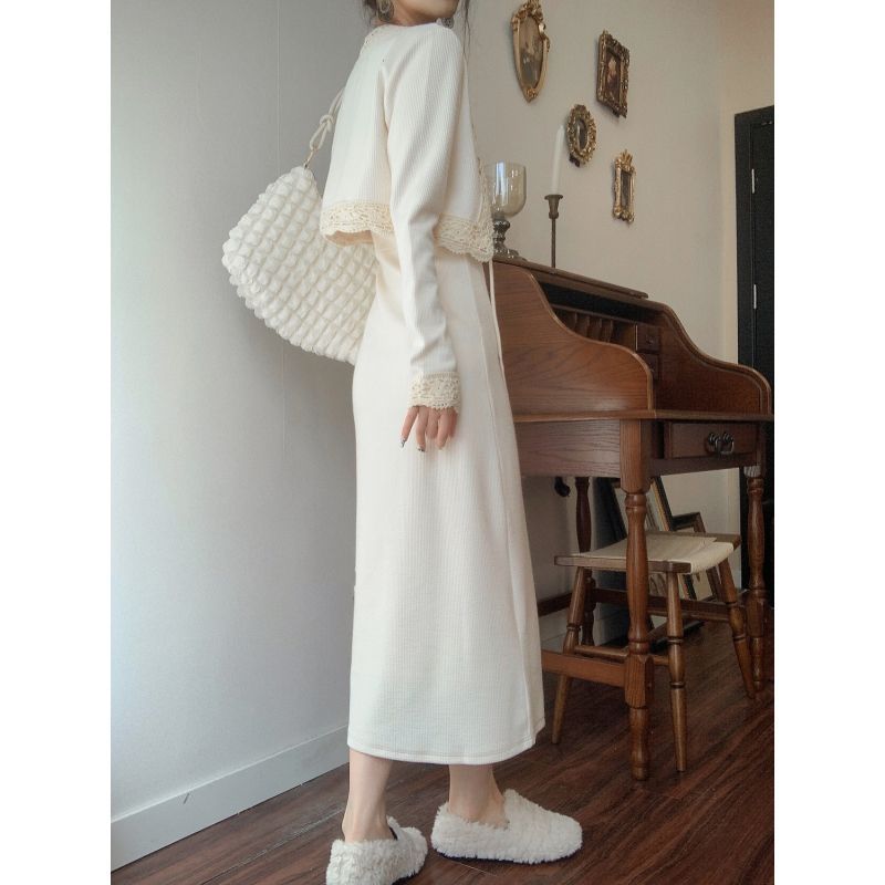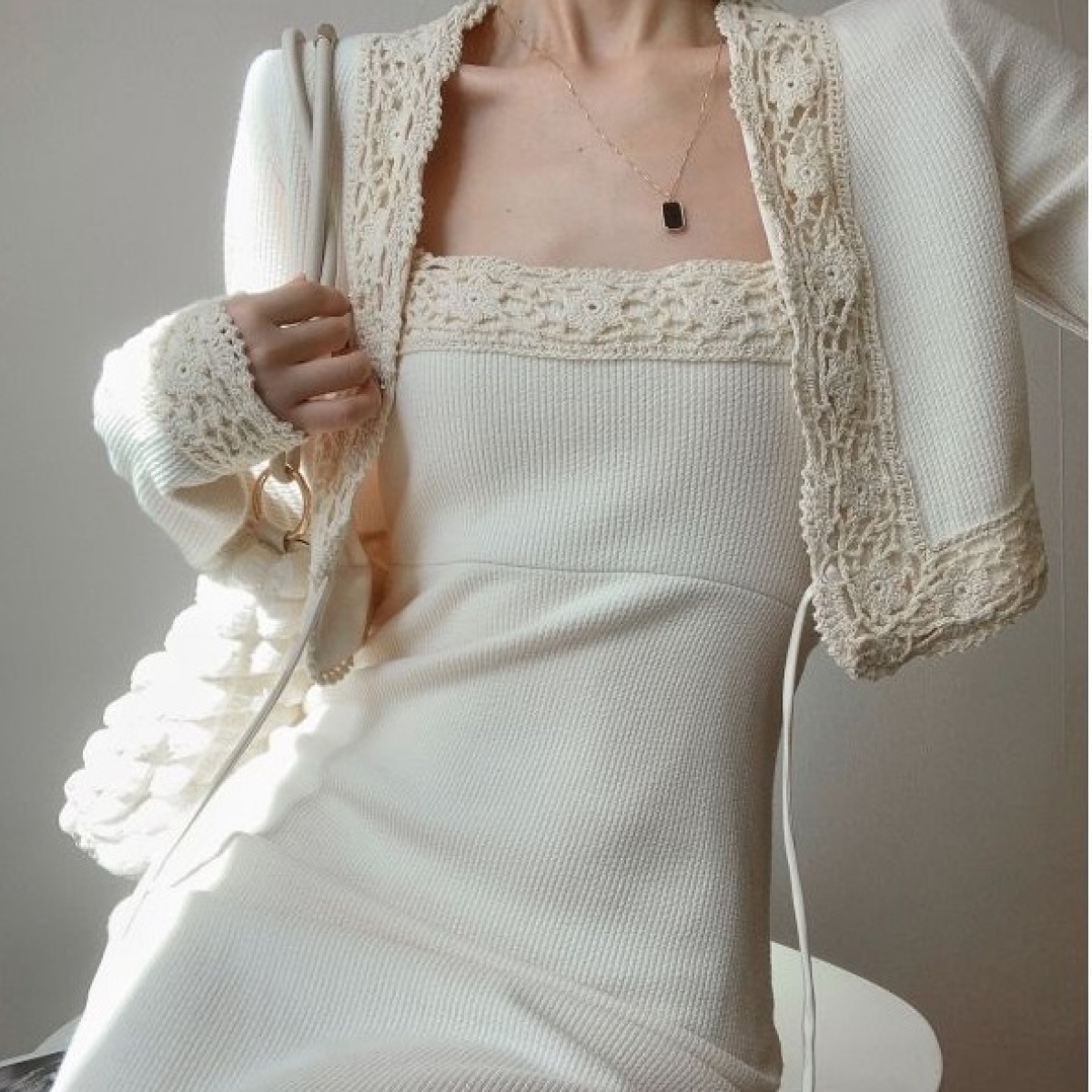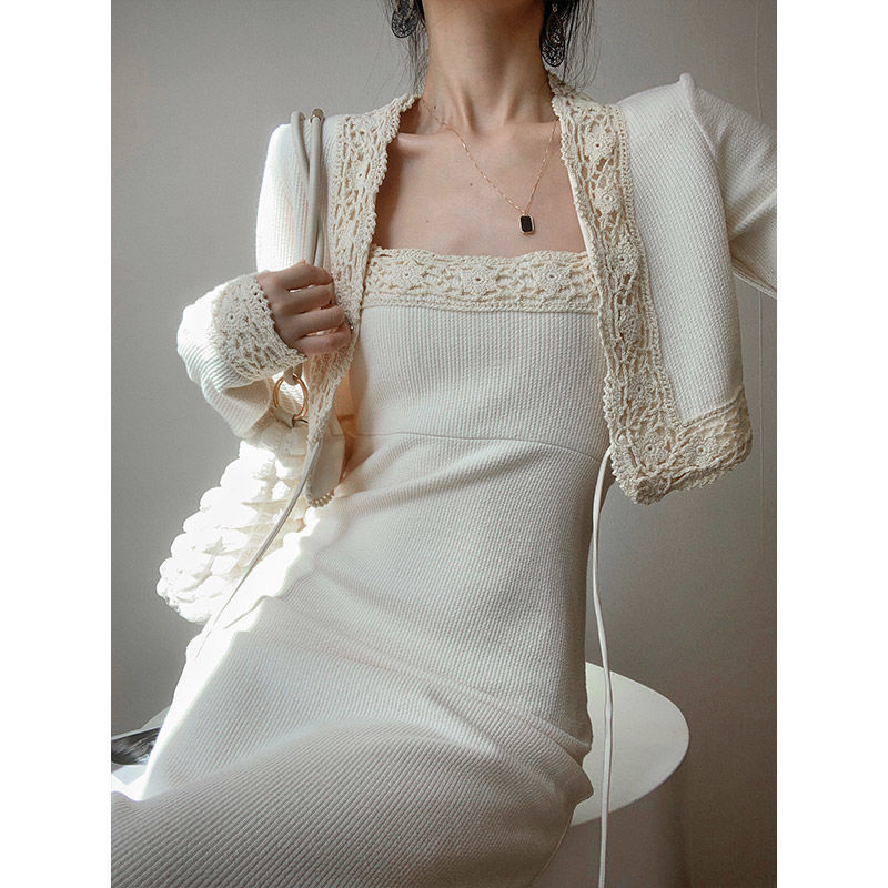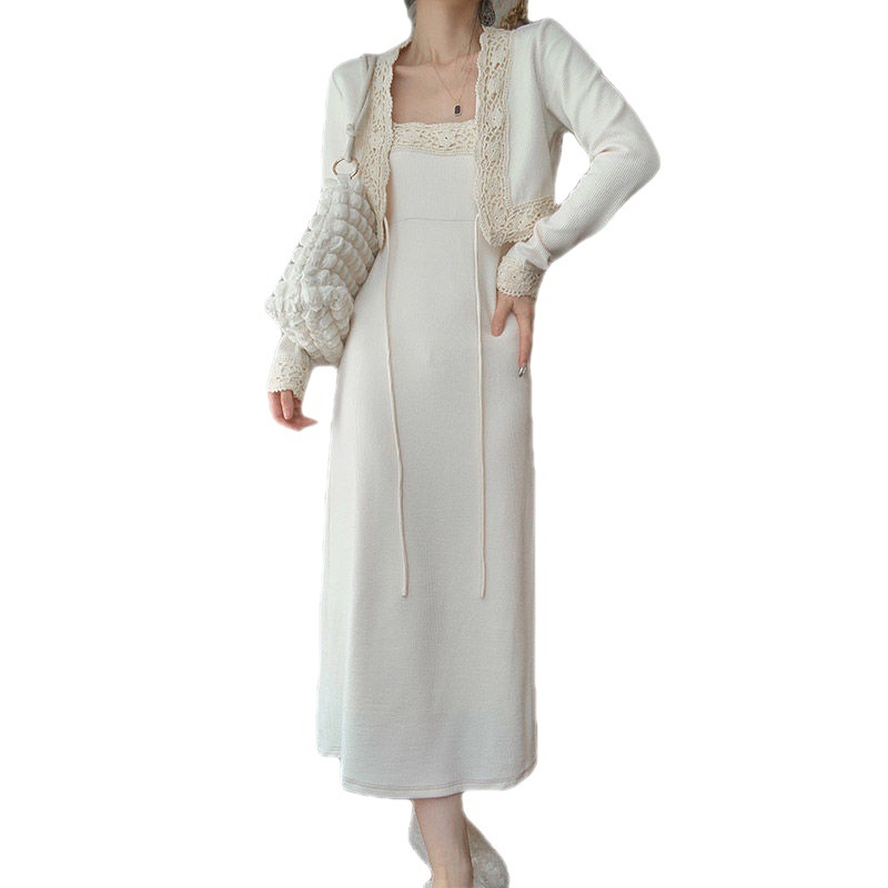 Color: Cardigan suspender skirt