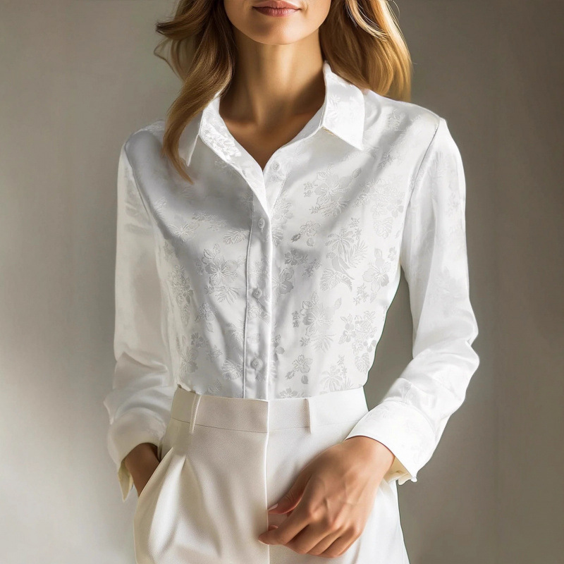 New French Jacquard Subtle Pattern Lapel Long Sleeve Shirt Women's Clothing