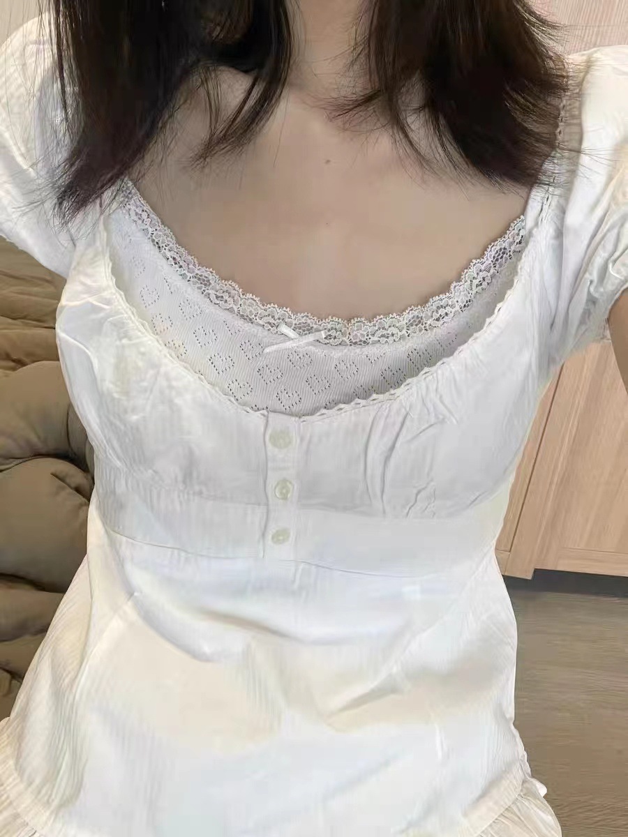 Color: white flat edge, white lace, bandage sling dress