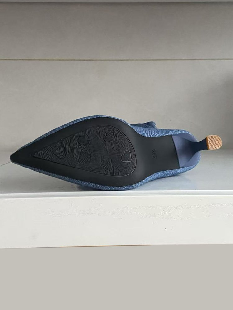 Heel Type: Slender stiletto heel for a sophisticated lift and elegant silhouette.Toe Shape: Pointed toe for a slim, leg-lengthening aesthetic.Closure: Slip-on design with a ruched upper for easy on and off.Color: Sky BlueHeel Height: Approx. 6-8 cm (elegant and stylish for all-day wear)Sole: Non-slip rubber sole for stability and durability.Shaft Height: Mid-calf with a slouchy, ruched design for a relaxed, vintage look.