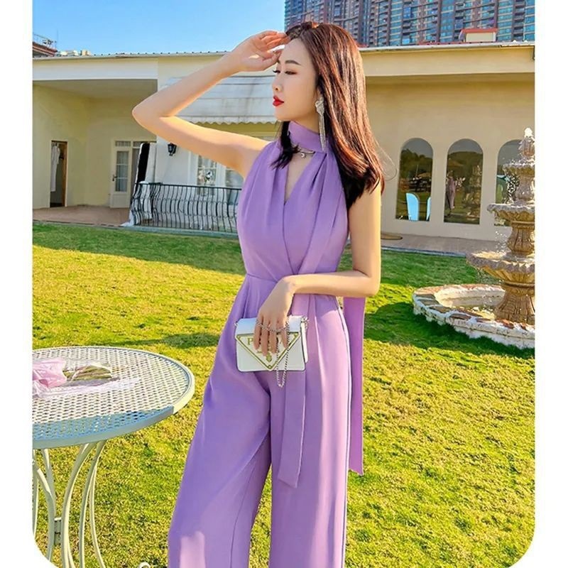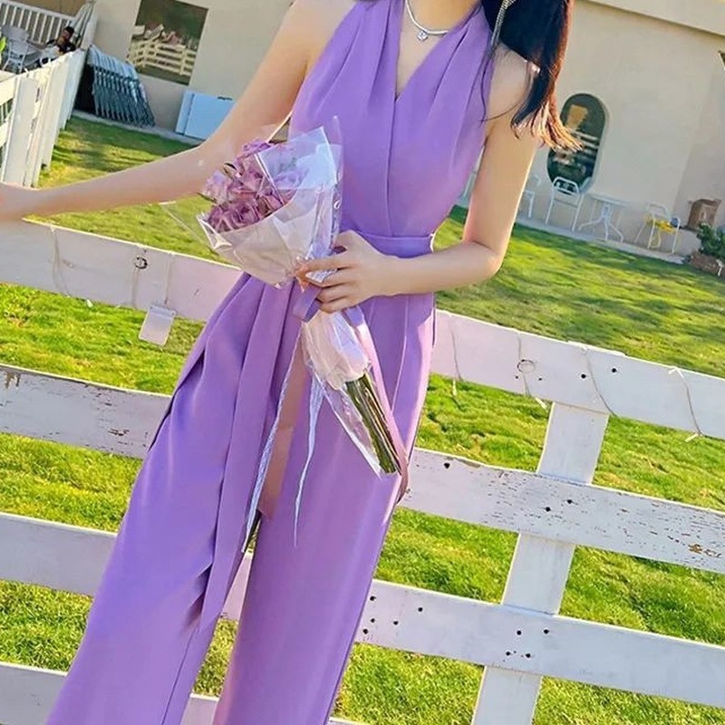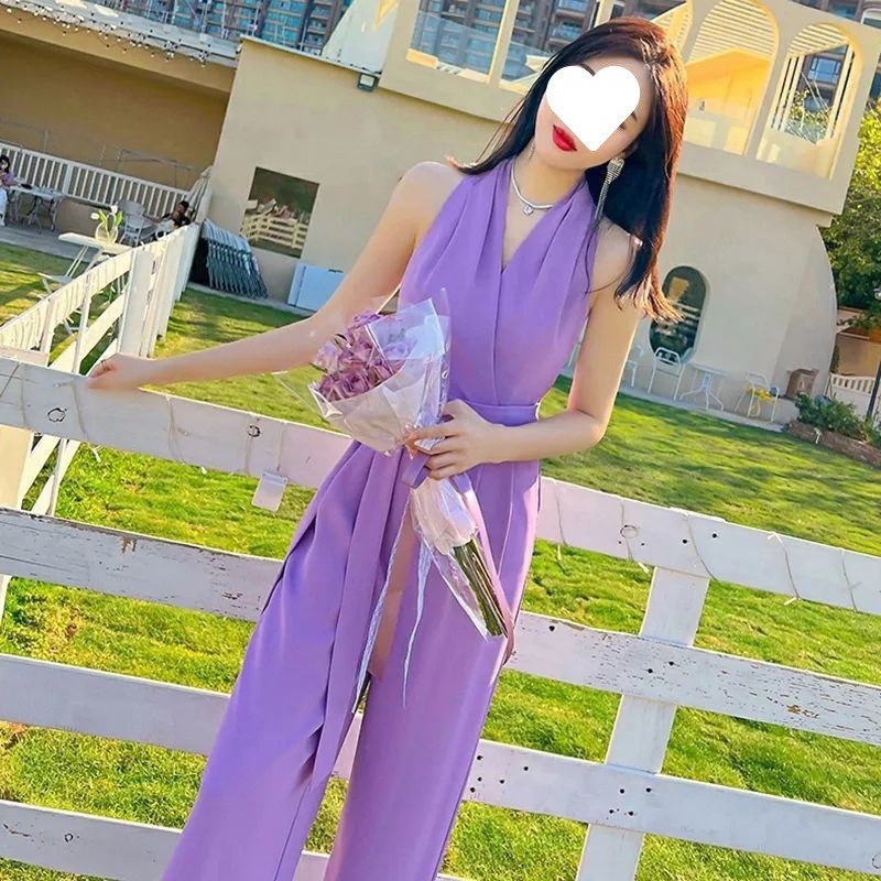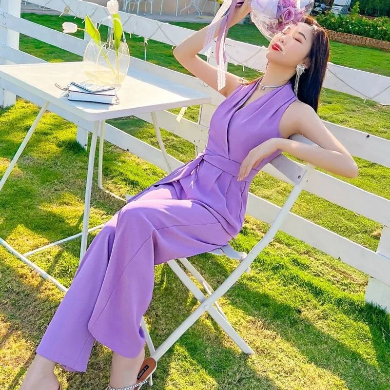 Color: Rose purple jumpsuit, one-piece black camisole [free size]]