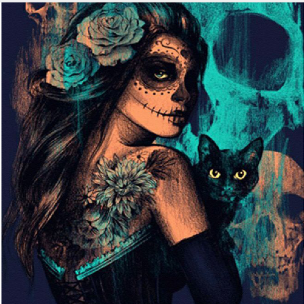 New Full Square Diamond 5D DIY Diamond Painting Skull Cats