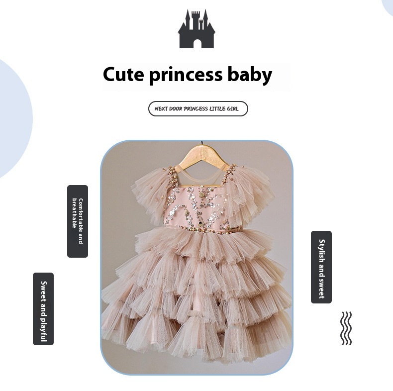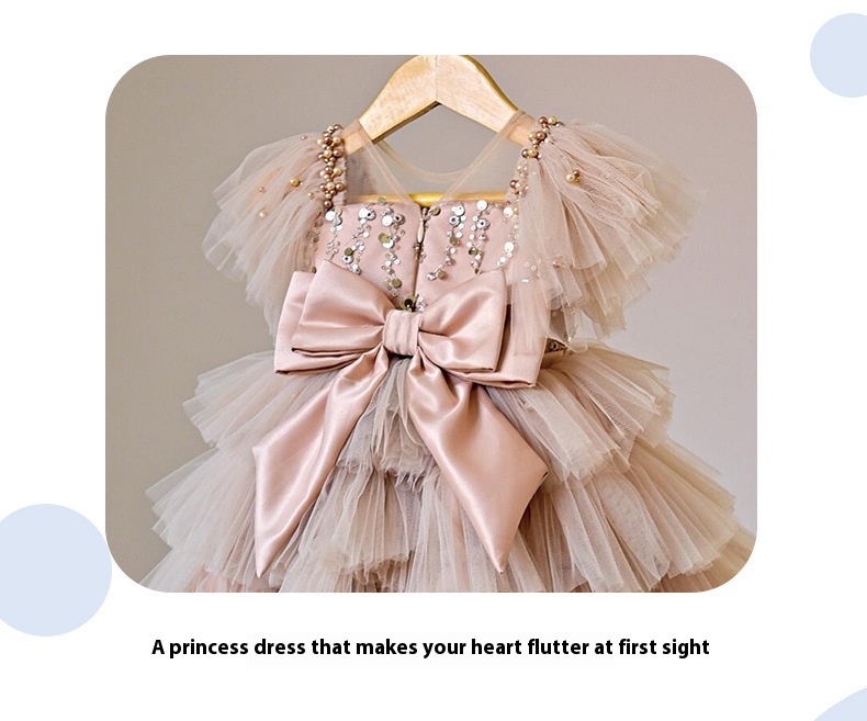 New Girls Sequins Bow Princess Dress