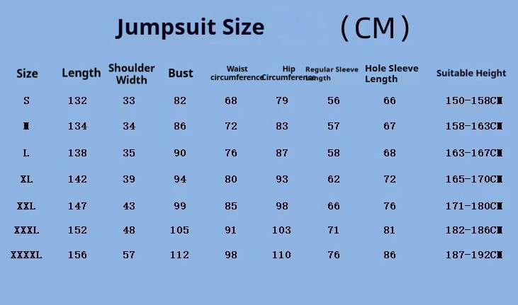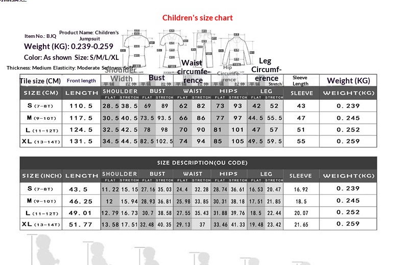 Sizes: Adult S (155cm), Adult M (165cm), Adult L (170cm), Adult XL (175cm), Children's S (110cm), Children's M (120cm), Children's L (130cm), Children's XL (140cm), Adult 2XL (180cm), Adult 3XL (190cm)
