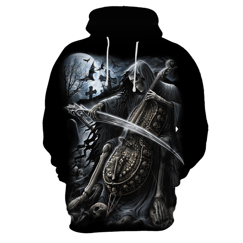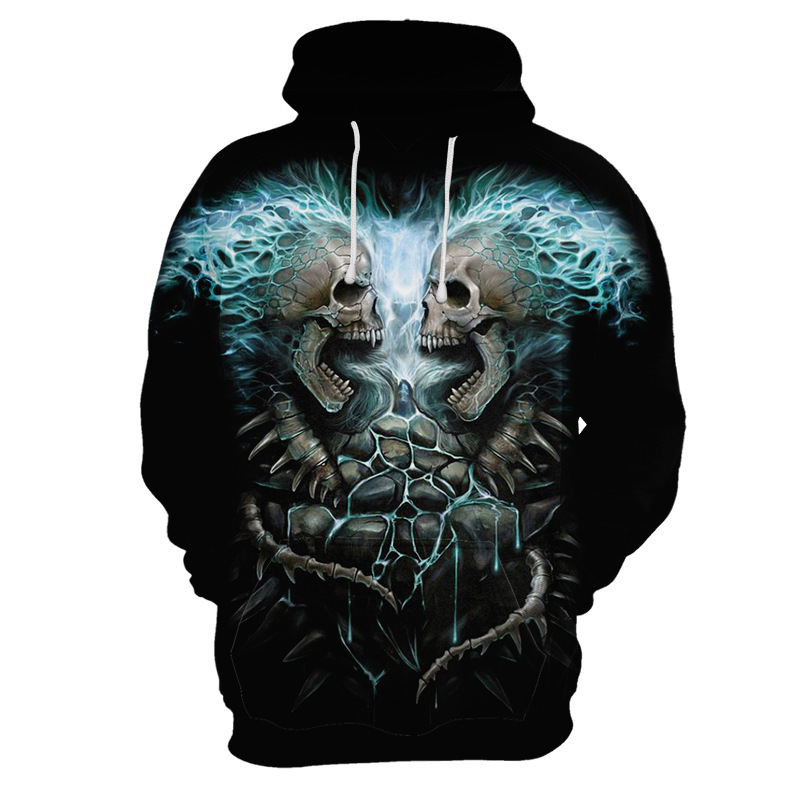 New Halloween Christmas Eve Skull 3D Digital Printed Fashion Brand Men's Pullover Hooded Sweater