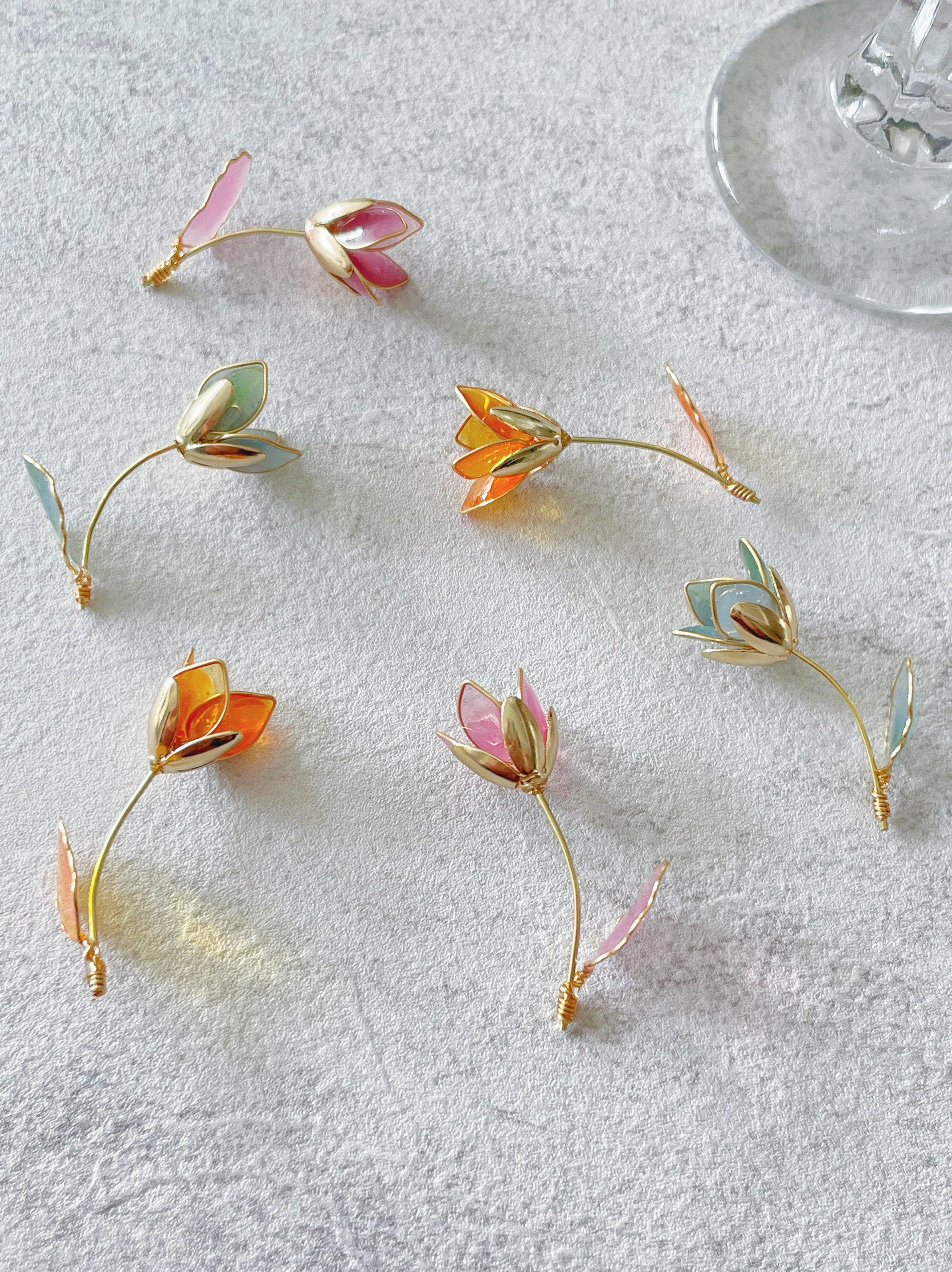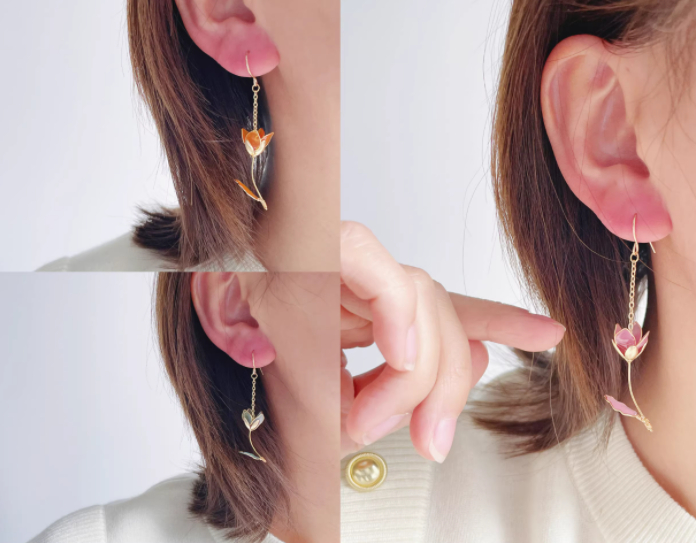 Product information:Colors: Pink-purple, teal, orange Target audience: Women Materials: Resin, S925 silver needle