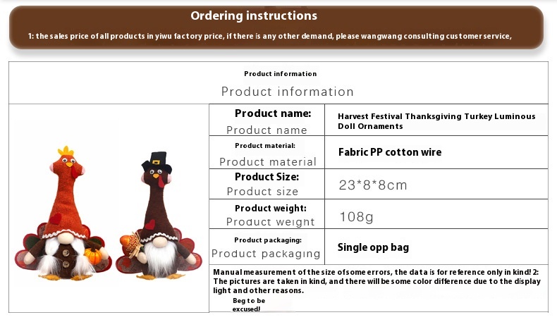 Color: Men's luminous Turkey doll ornaments, women's luminous Turkey doll ornaments