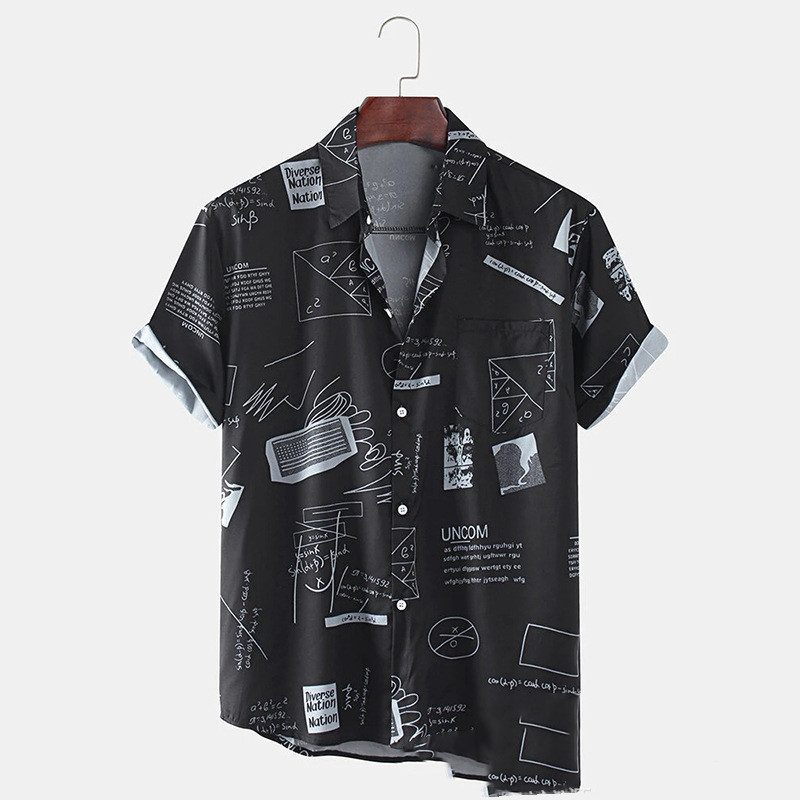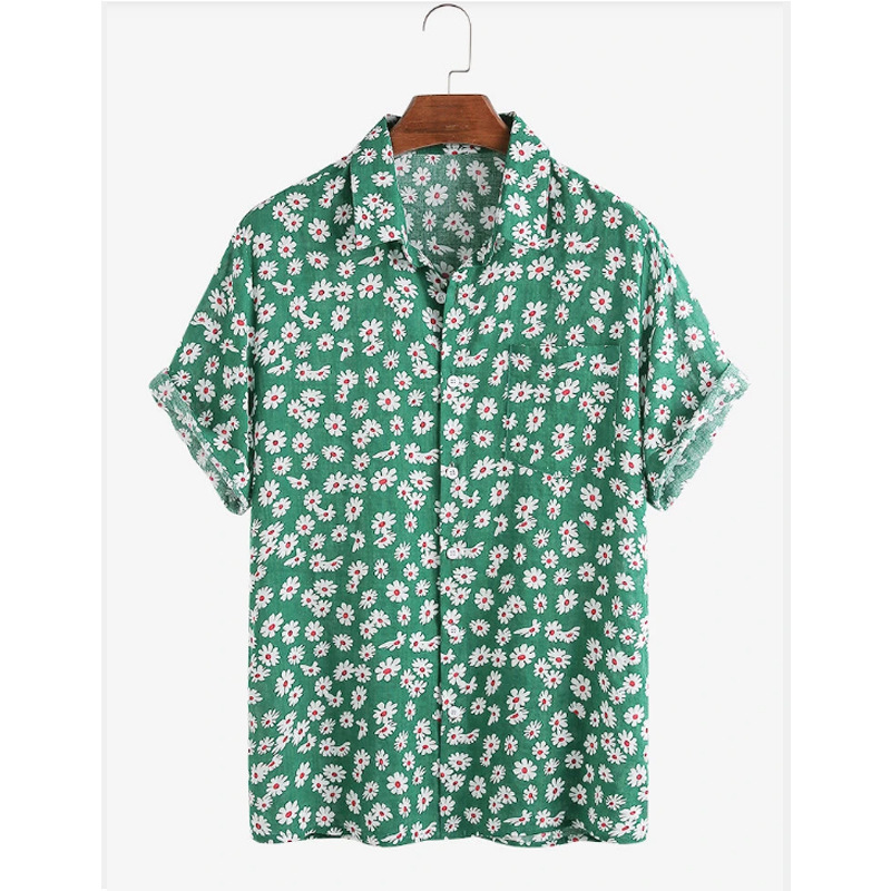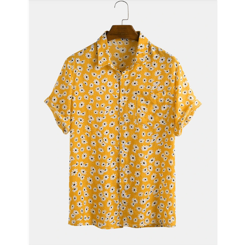 New Hawaiian Men's Cardigan Cotton Linen European And American Men's Shirt Printed Short Sleeve Shirt