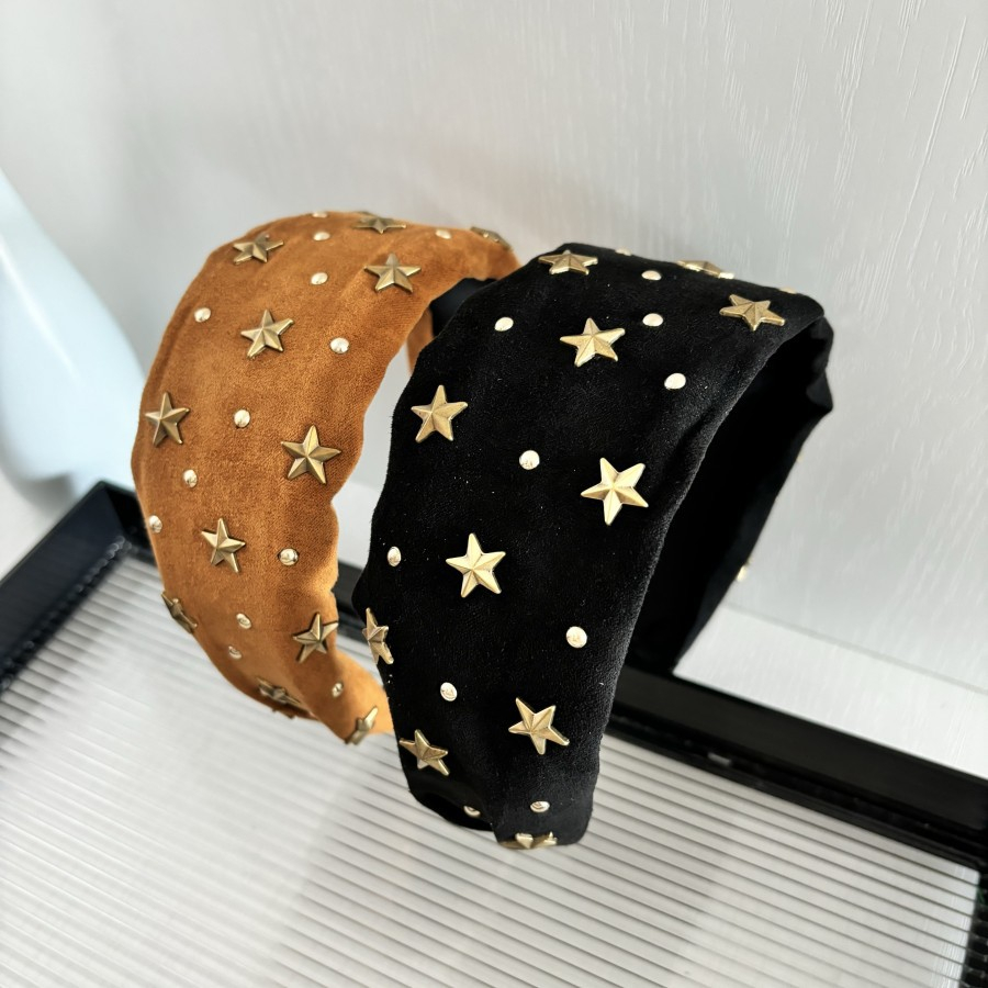 Color: Black XINGX rivet flat headband, Brown XINGX rivet flat headband, pink XINGX rivet flat headband, khaki XINGX rivet flat headband, navy blue XINGX rivet flat headband
