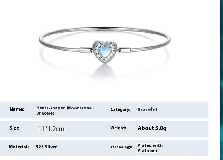 New Heart-shaped Moonstone Basic Bracelet Can Be Worn Alone