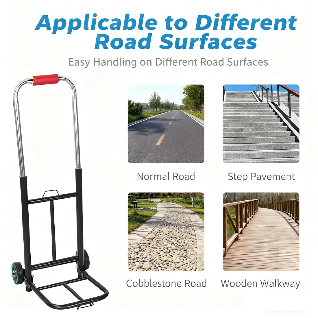 1. Very suitable for home or business use. The trolley has a folding frame, which is convenient for storage and transportation, and is equipped with a retractable anti-slip handle, which is convenient for holding and moving.