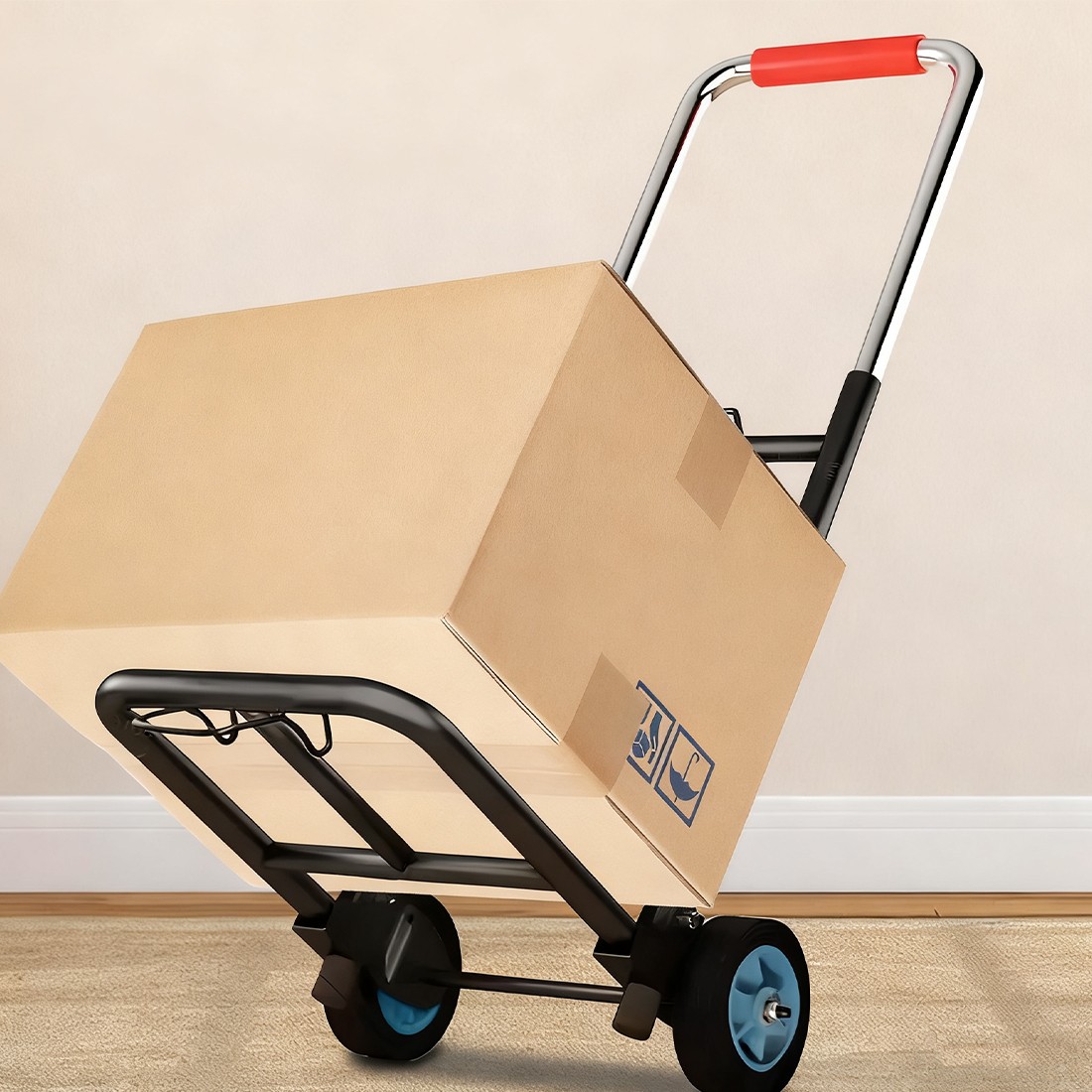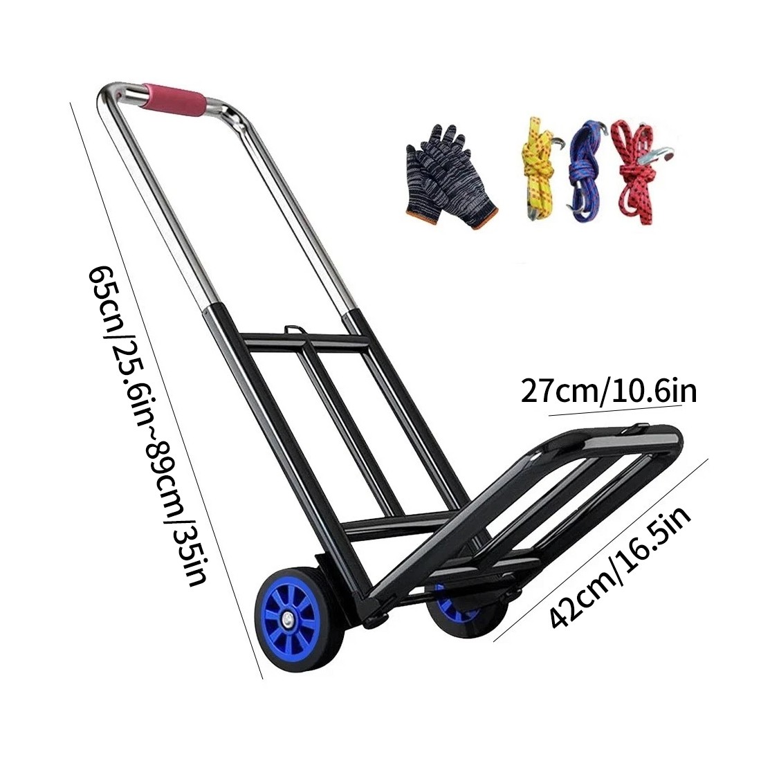 2. The trolley is made of high-quality steel and durable. The trolley also includes two detachable elastic belts, which are used to secure the goods during transportation.
