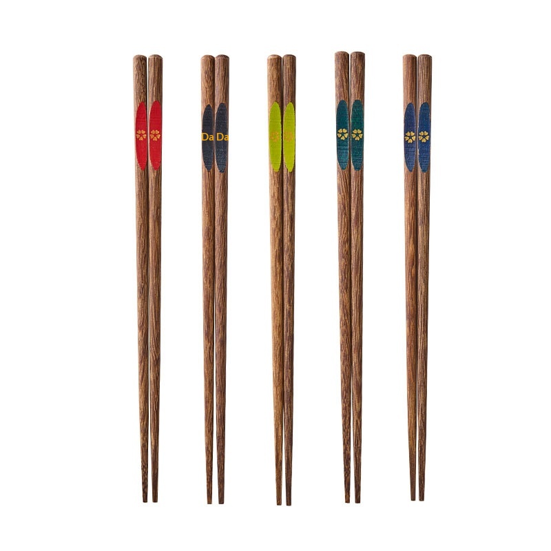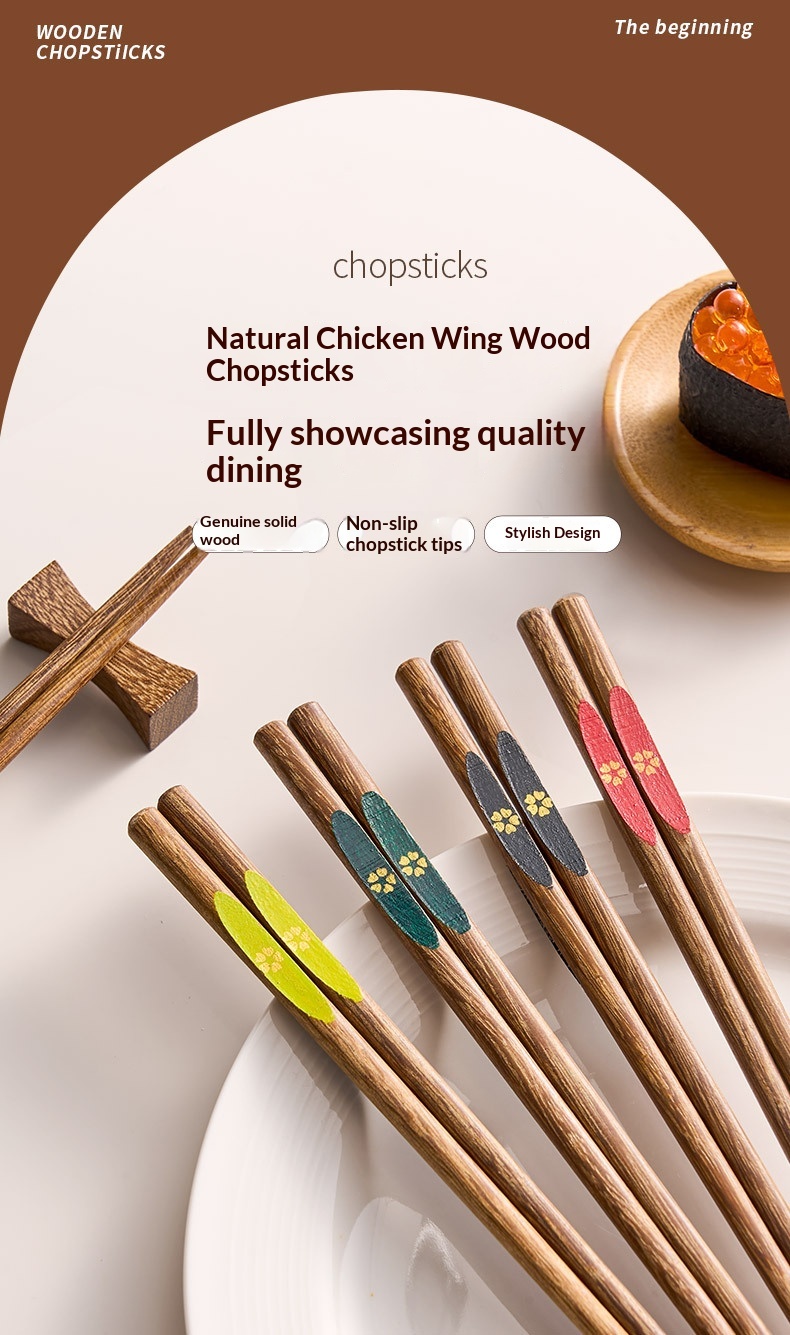Color: 5 Pairs of Small Golden Flower Chicken Wing Wood Chopsticks [Set of 5]