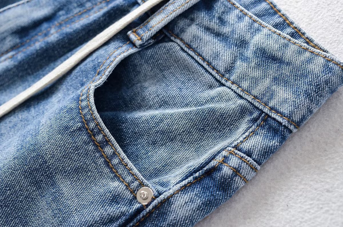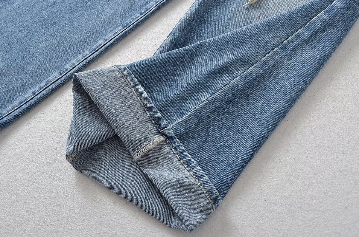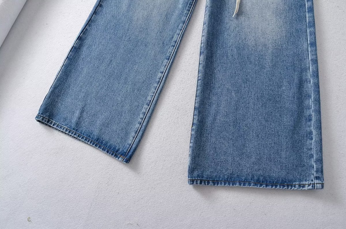 New High Waist Drawstring Ribbon Casual Loose Straight Jeans