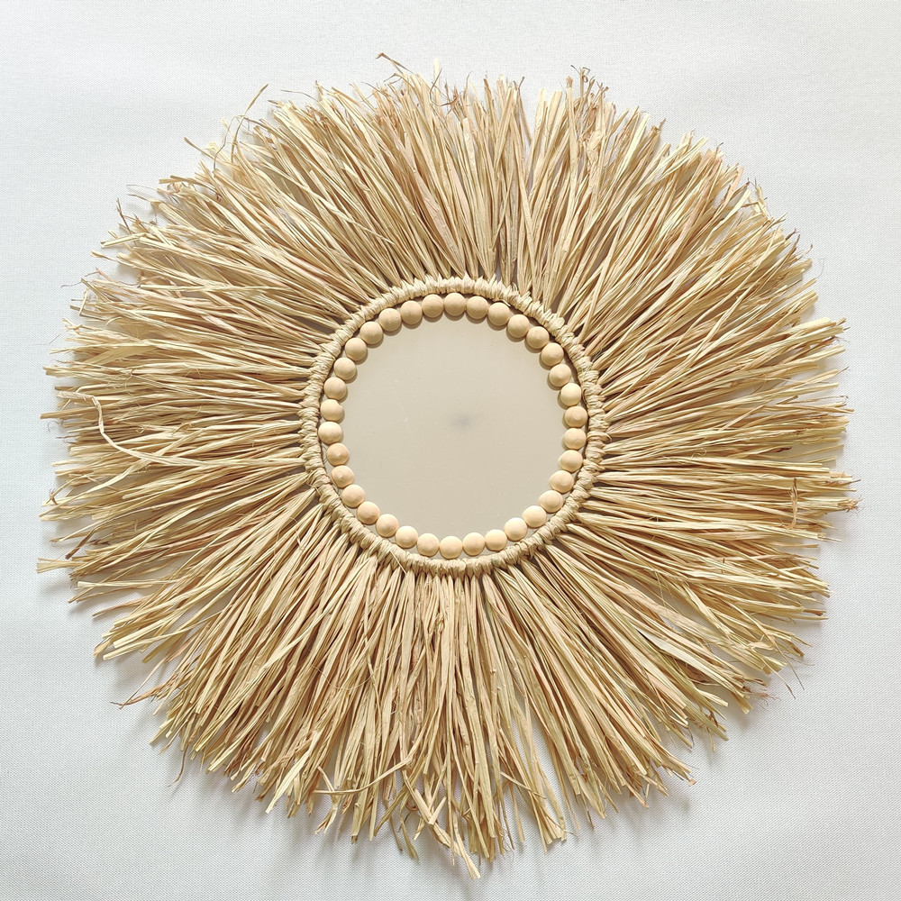 Specifications: Mirror, wood beads, hollow wood beads
