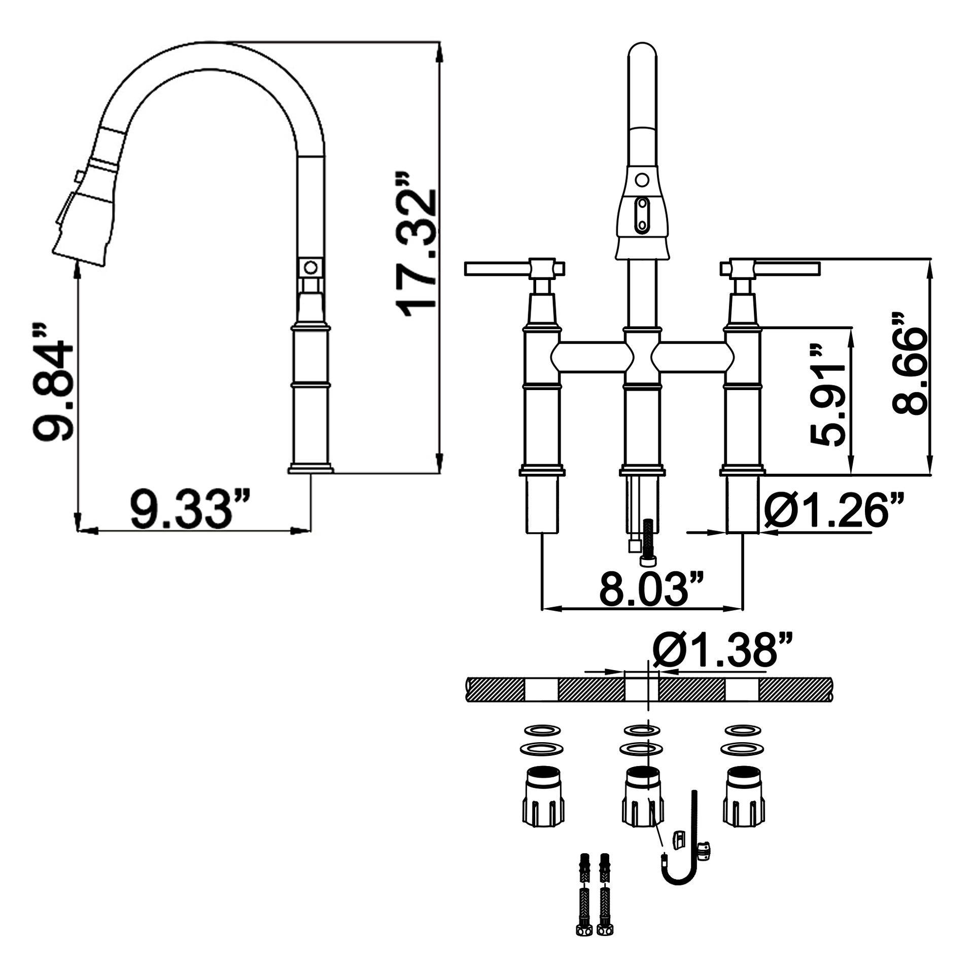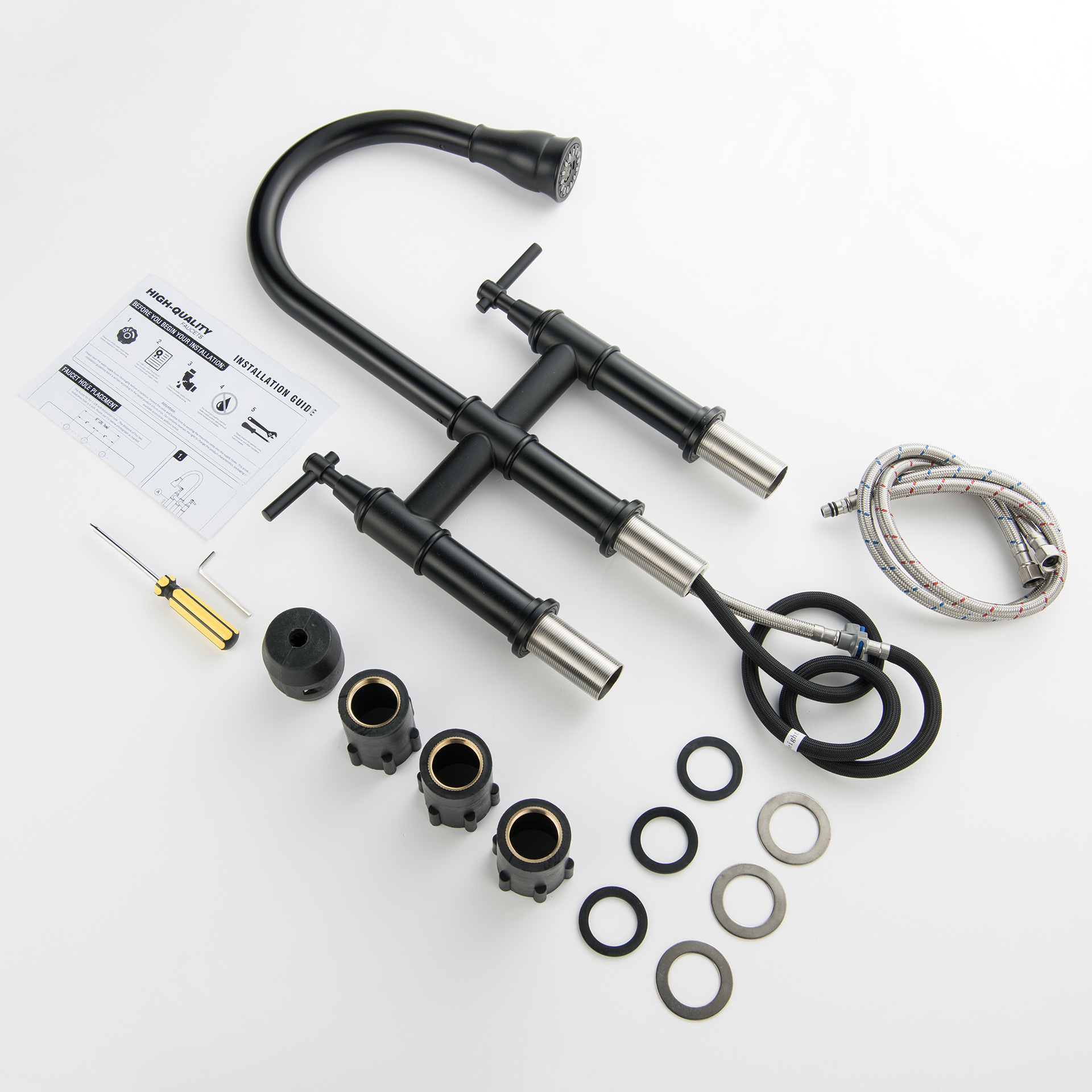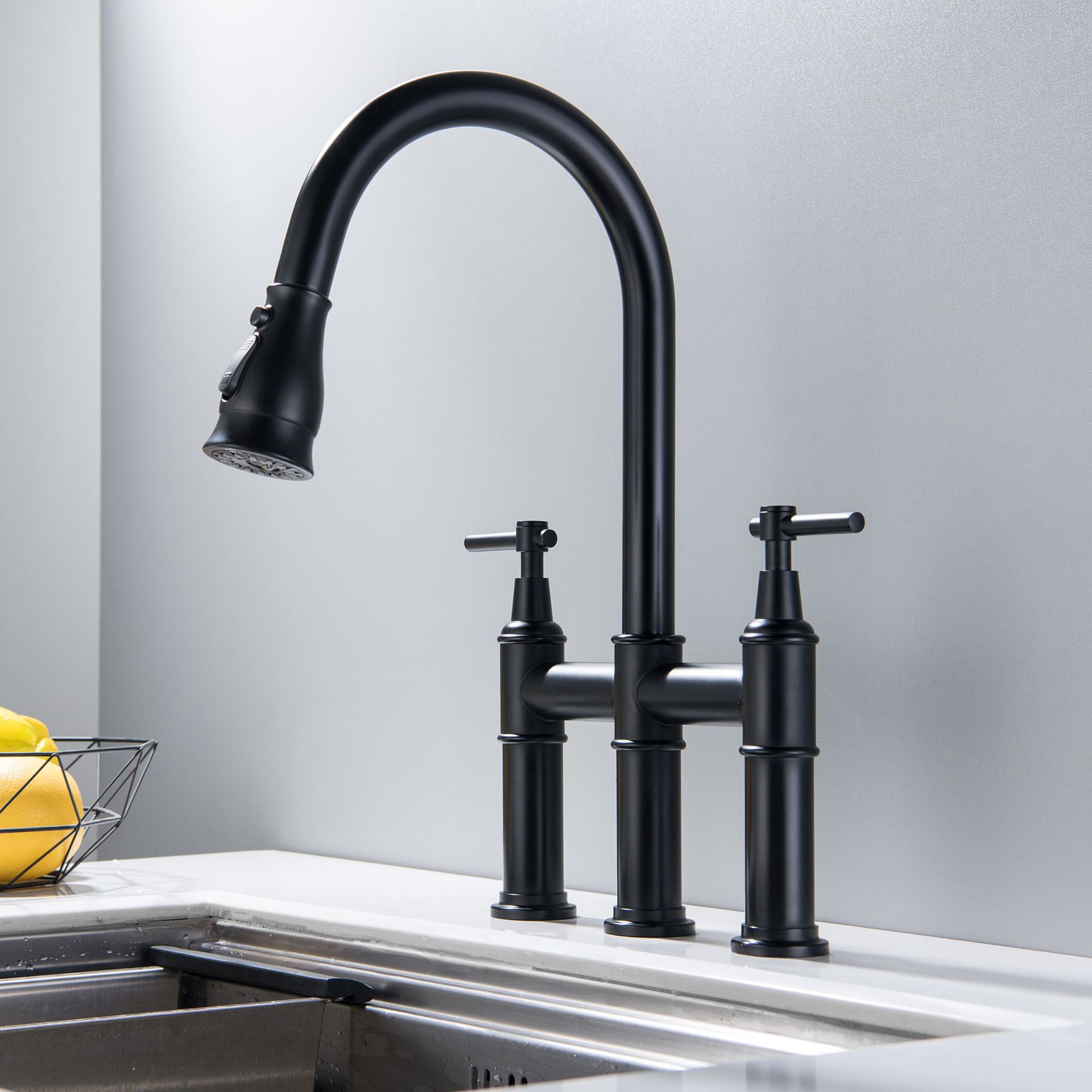 New Household Double Handle Kitchen Faucet 304 Stainless Steel