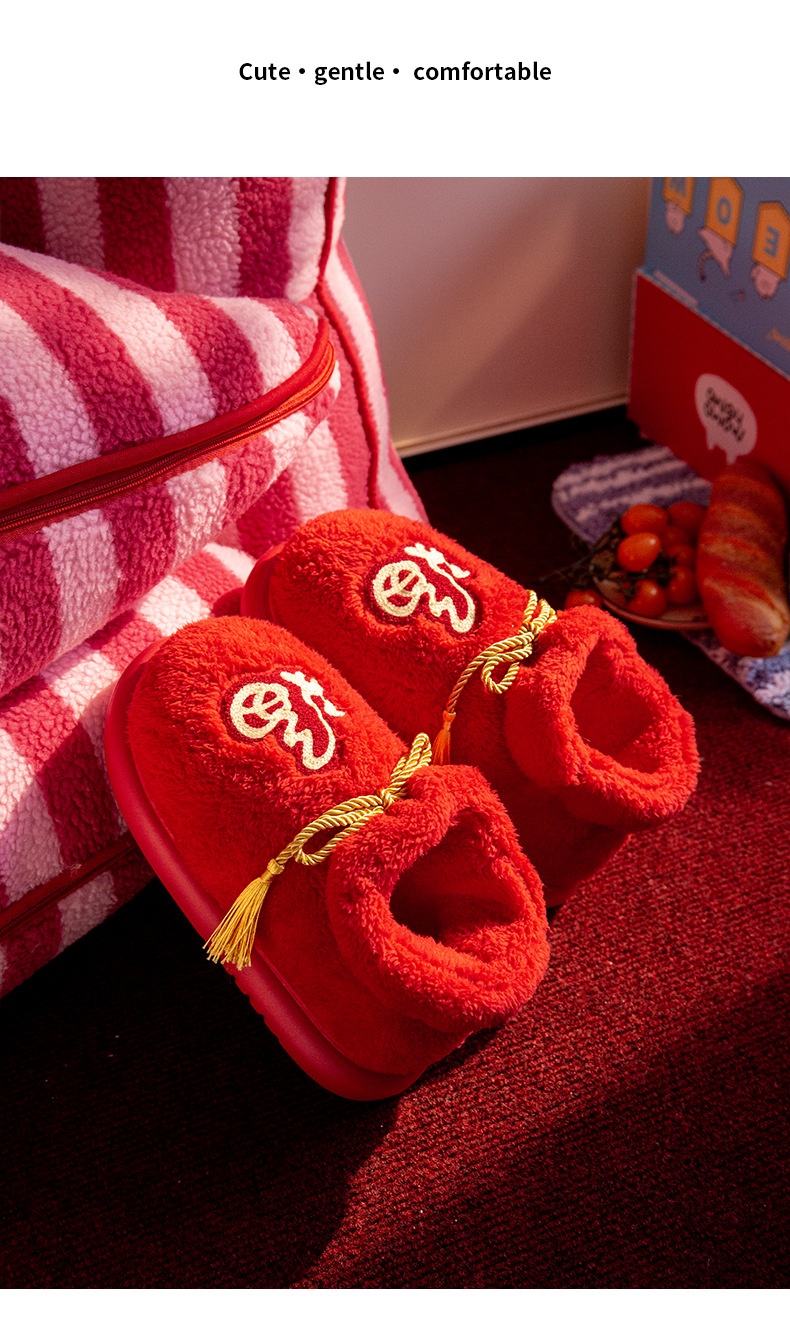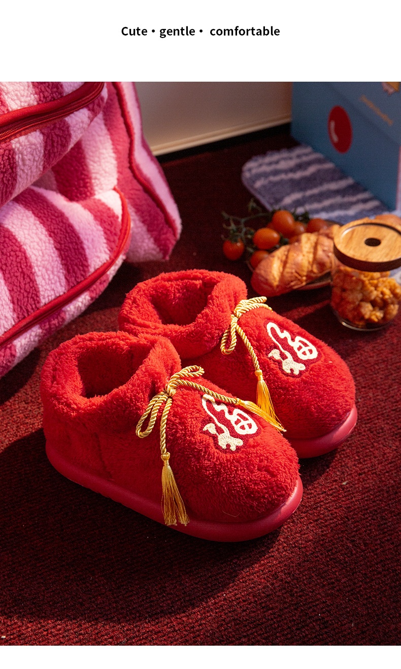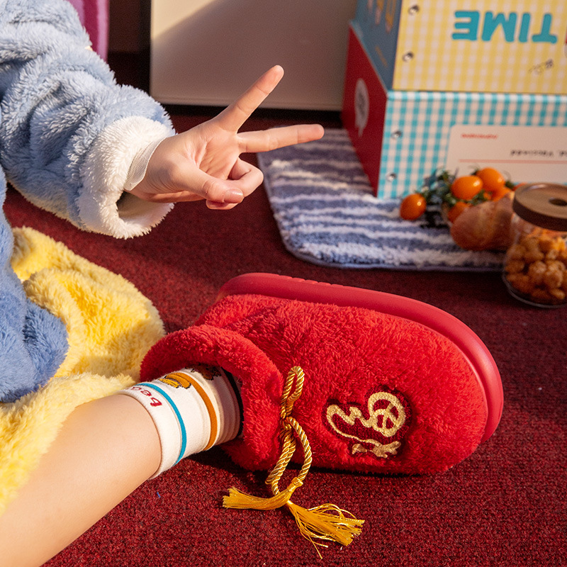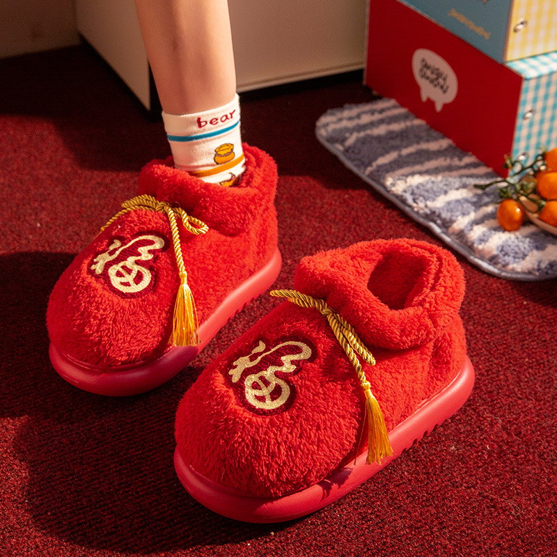 New Indoor Home Red Birthday Year Festive Woolen Slipper Winter
