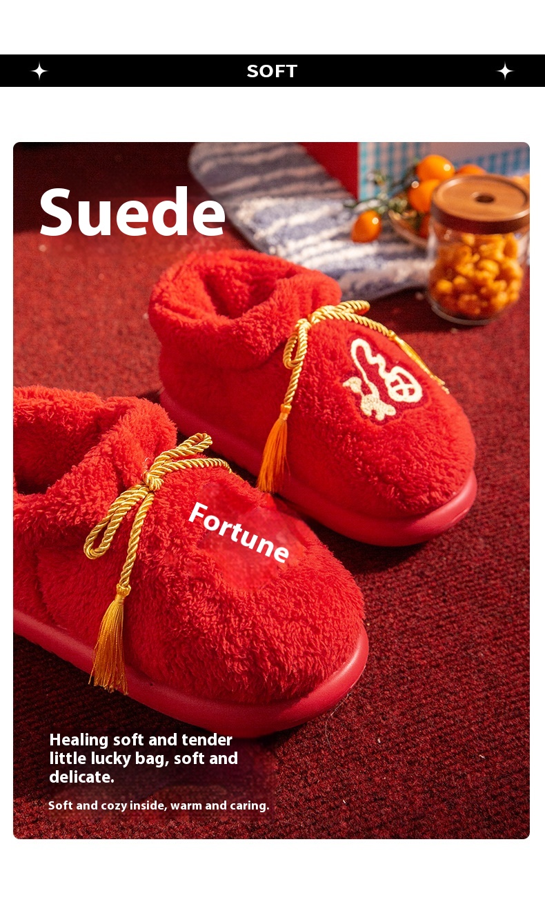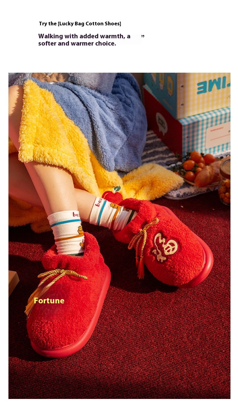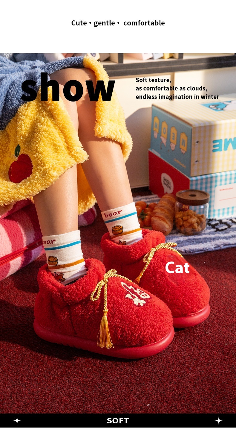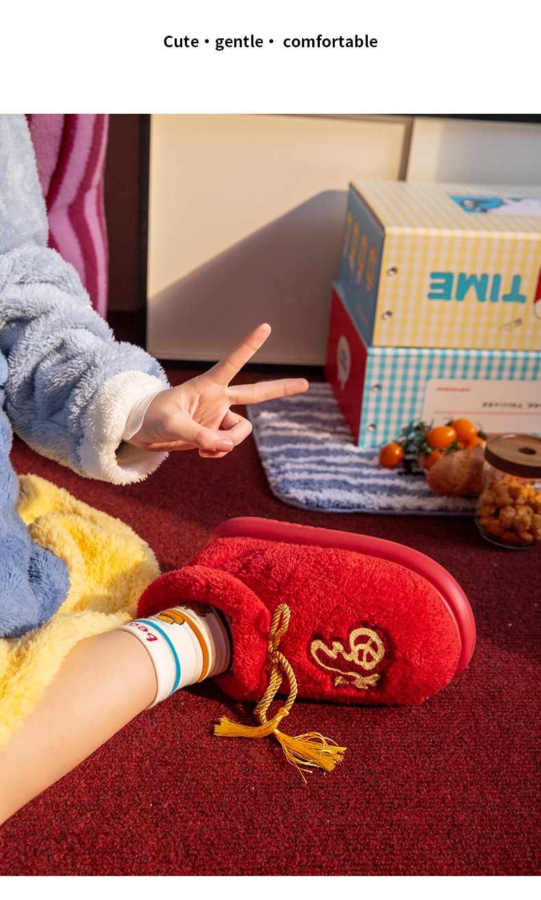 New Indoor Home Red Birthday Year Festive Woolen Slipper Winter