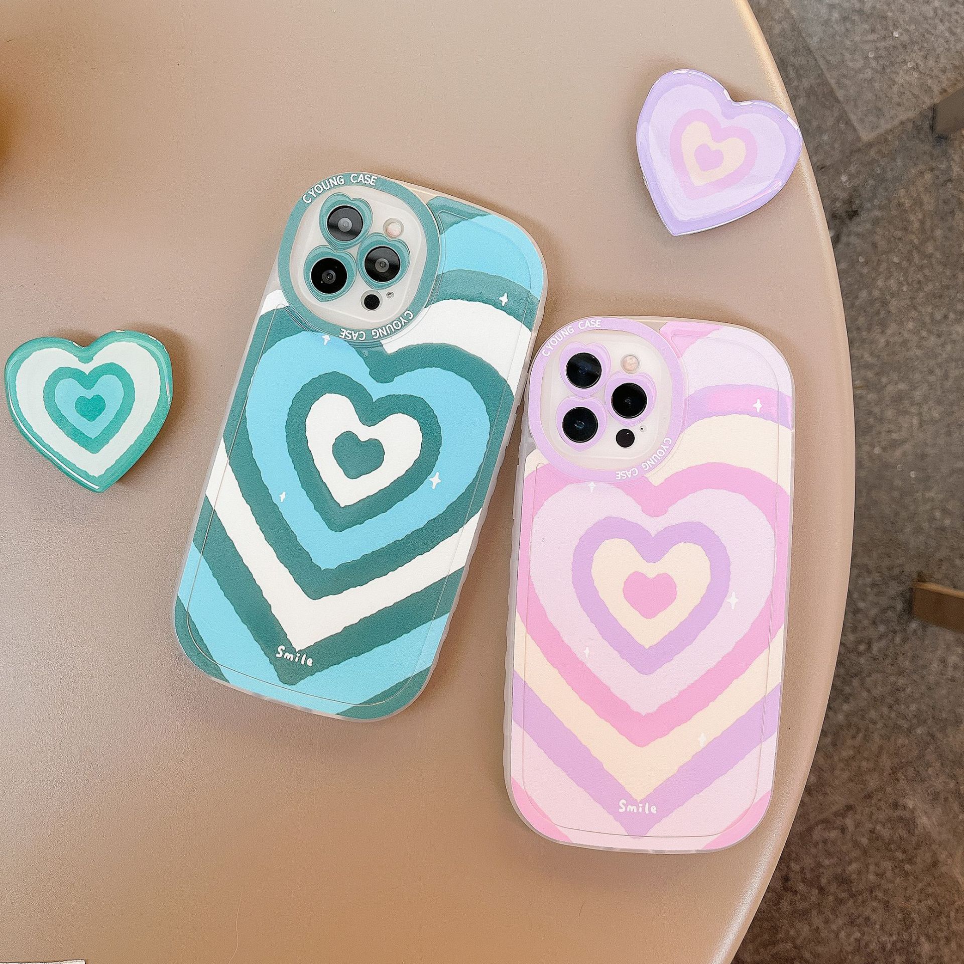 Color: blue heart + bracket, purple heart + bracket
