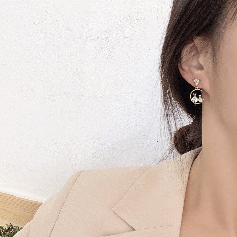 New Ins Style Sweet Temperament Flash Diamond Earrings