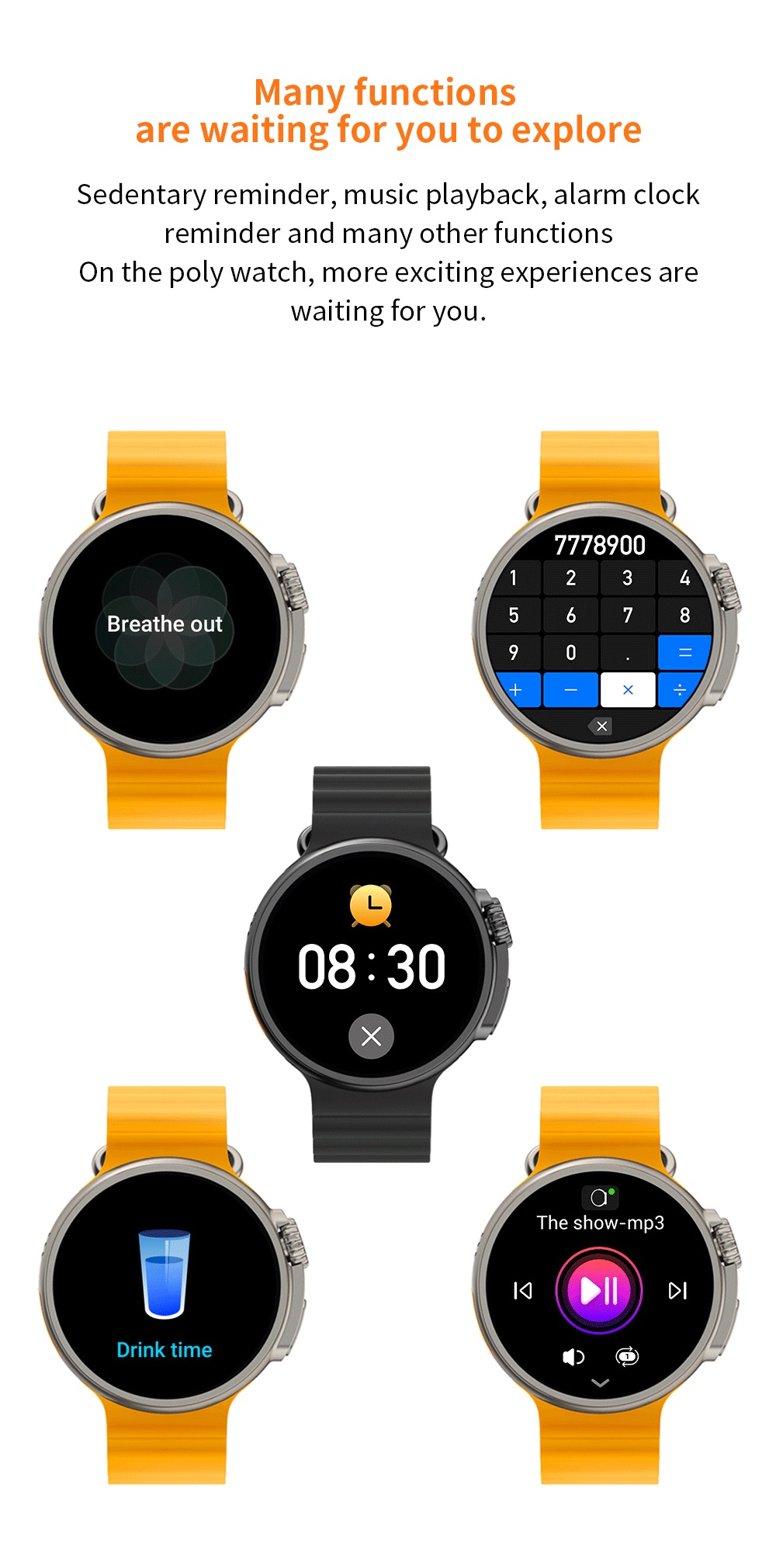4. Reminders (information, sedentary, drinking water, alarm clock), weather, WeChat sports, music control, women's health, breathing training, remote photography;