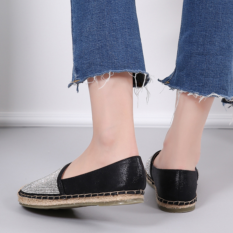 New Korean Style Women's Shoes With Rhinestones, Straw Woven Rope Fisherman Shoes, Women's Lazy Shoes