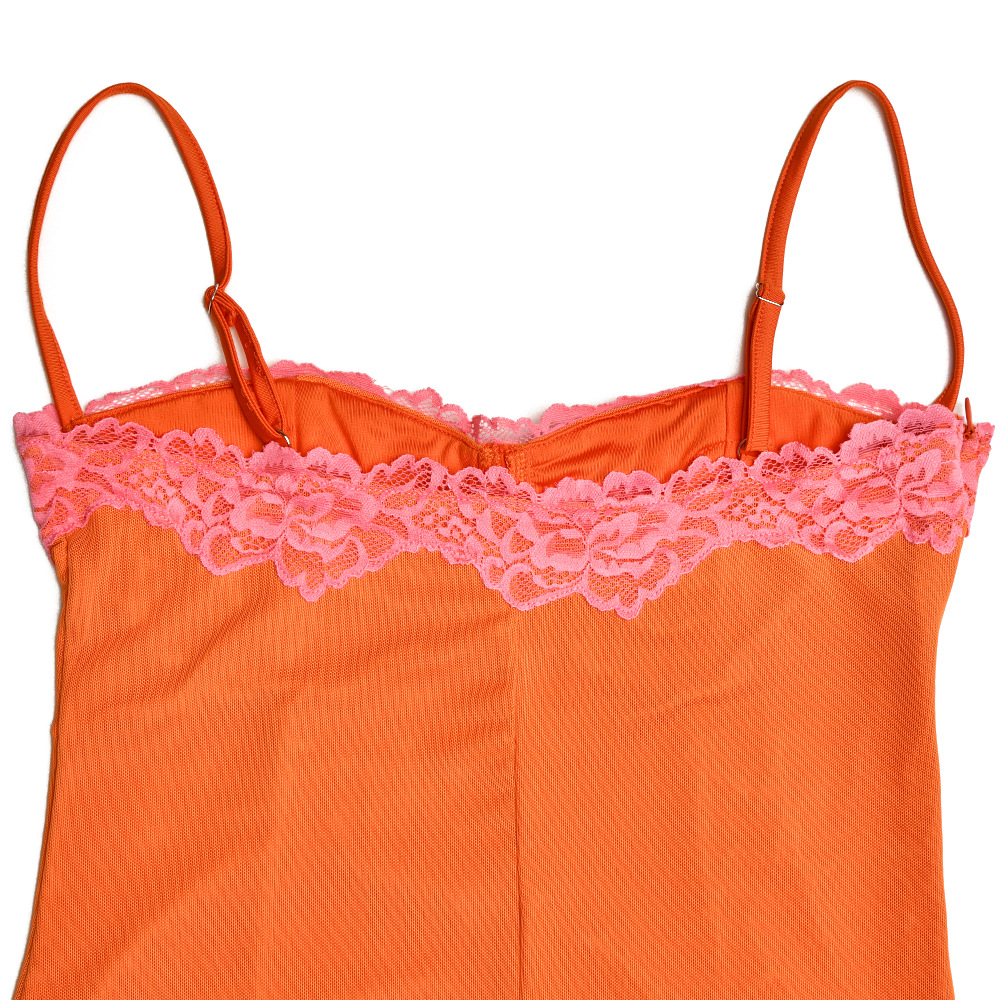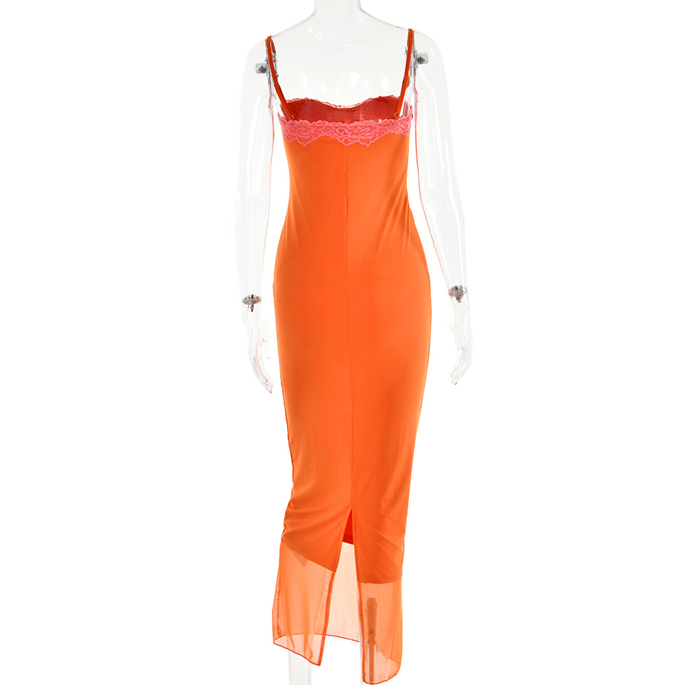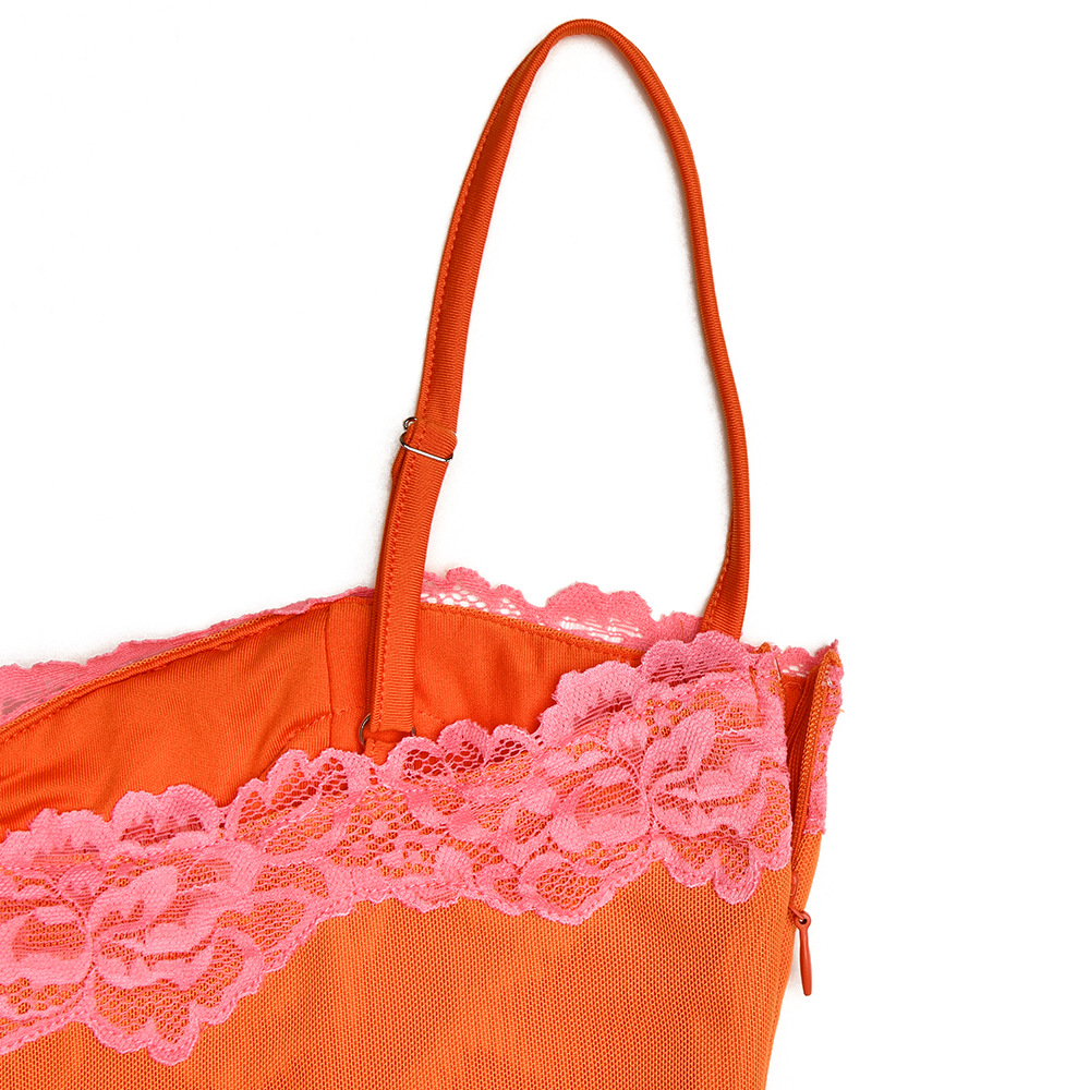 Color: Orange, using mesh milk Silk (lining) material as double layer, lace tube top design, zipper waist effect, full size spot