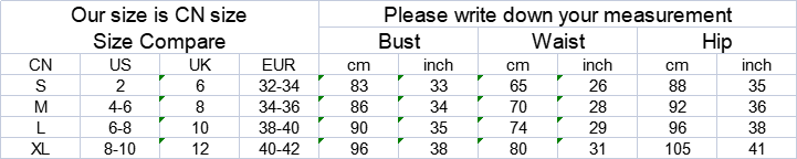 2. Please check the size chart carefully before you buy the item, if you don't know how to choose size, please contact our customer service.