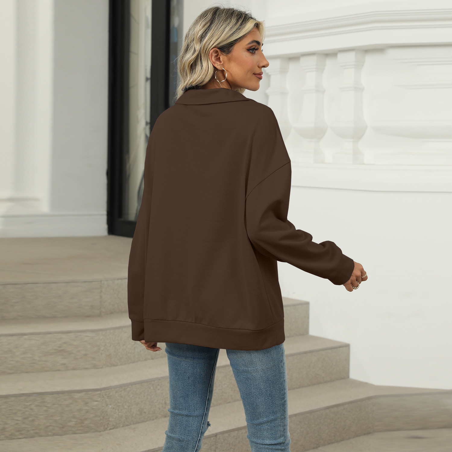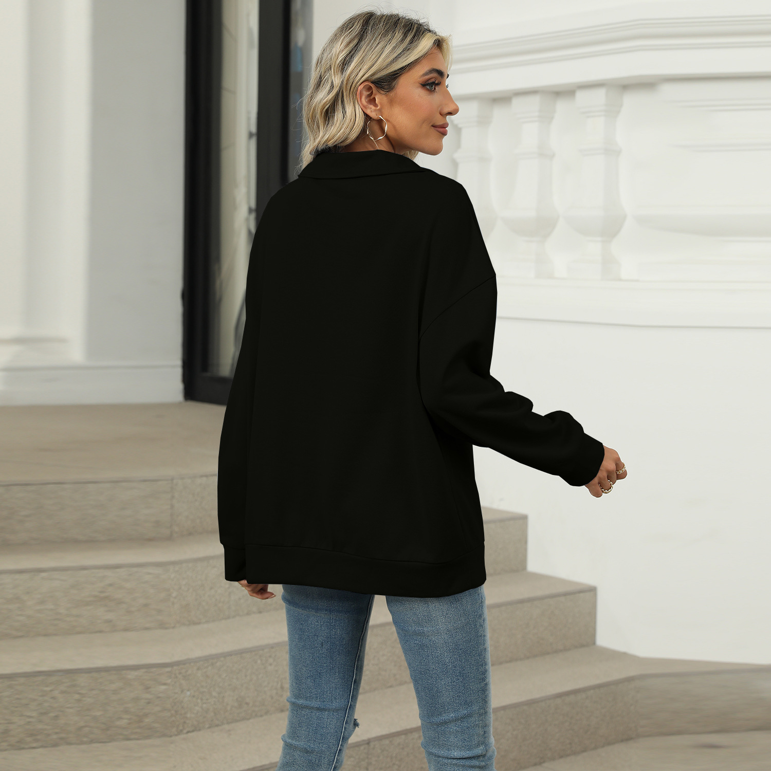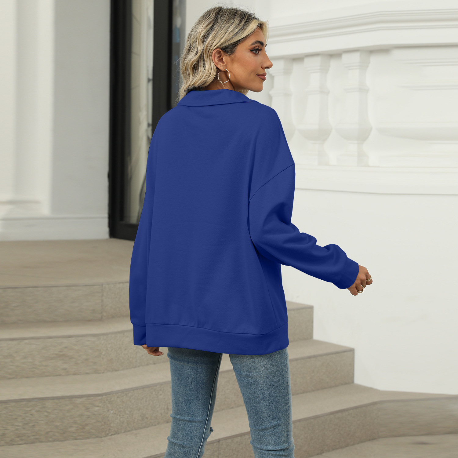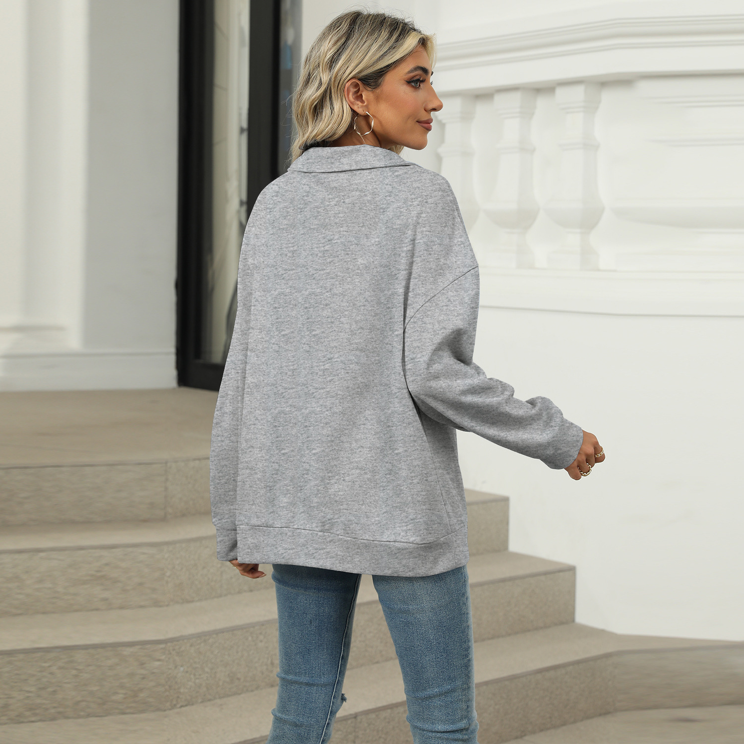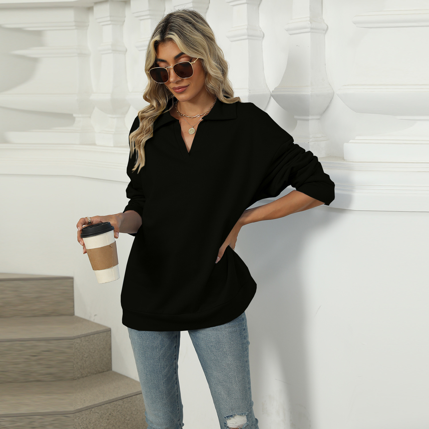 New Lapel V-neck Sweatshirt Fashion Casual Loose Solid Color Long-sleeved Pullover Top For Womens Clothing