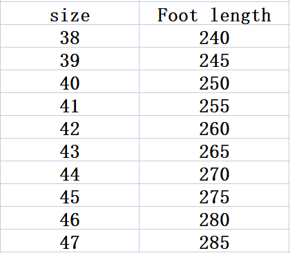 Size: 38, 39, 40, 41, 42, 43, 44, 45, 46, 47