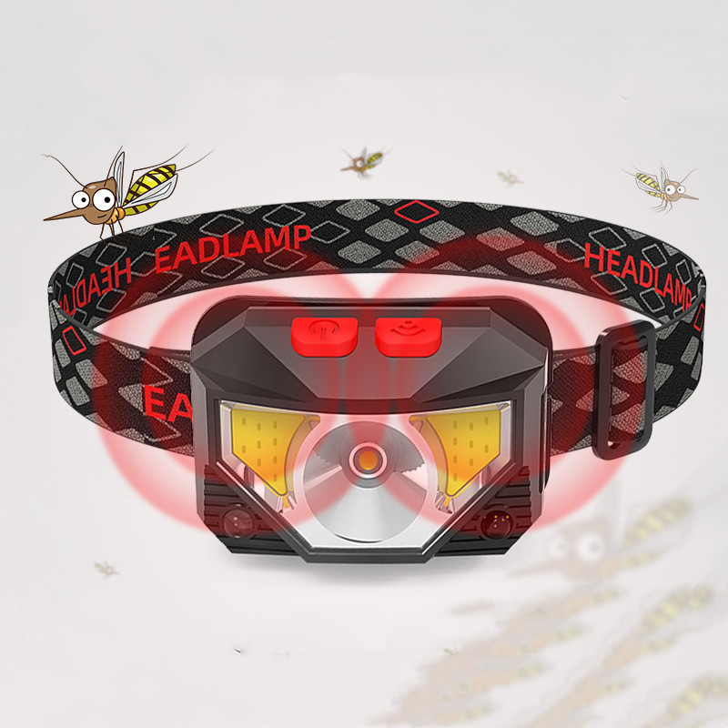 New LED Induction Red Light Fishing Headlight Mini USB Built-in Battery Multifunctional Light COB Major Headlamp