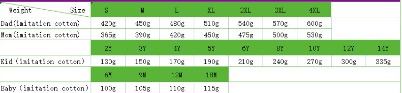 Suitable height: Father s size, Father M size, Father L, father XL, father 2XL, father 3XL, father 4XL, Mother S, Mother M, mother size L, mother XL, mom 2XL, mom 3XL, mom 4XL, kids 2, Kids 3, Kids 4, kids 5, kids 6, kids 8, kids 10, kids 12, kids 14, babies 6, baby 9, baby 12, baby 18