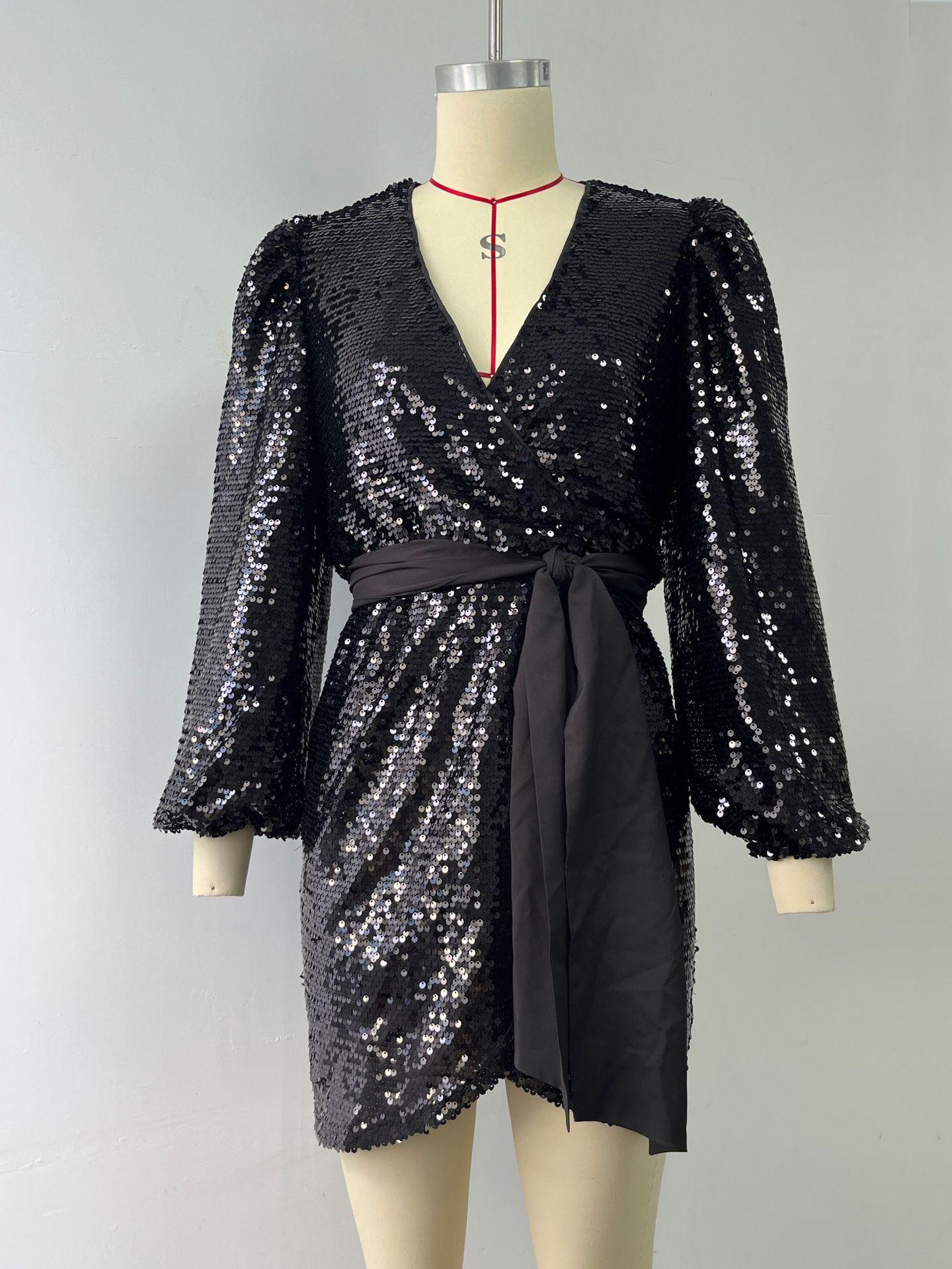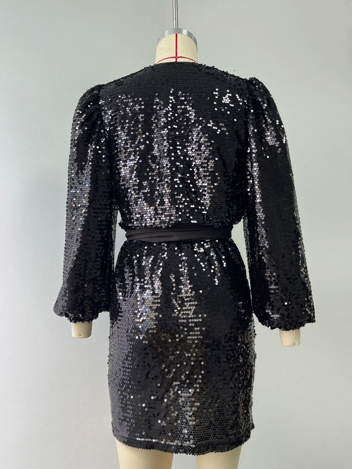 New Long-sleeve Sequin Lace-up Dress