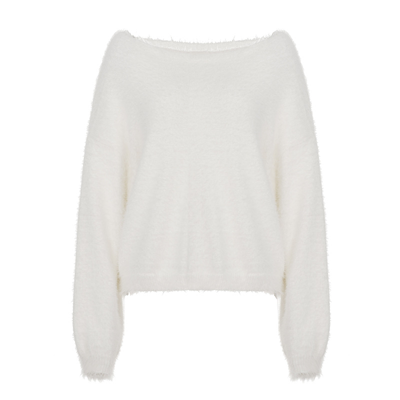 New Loose Diagonal Collar Solid Color Sweater For Women