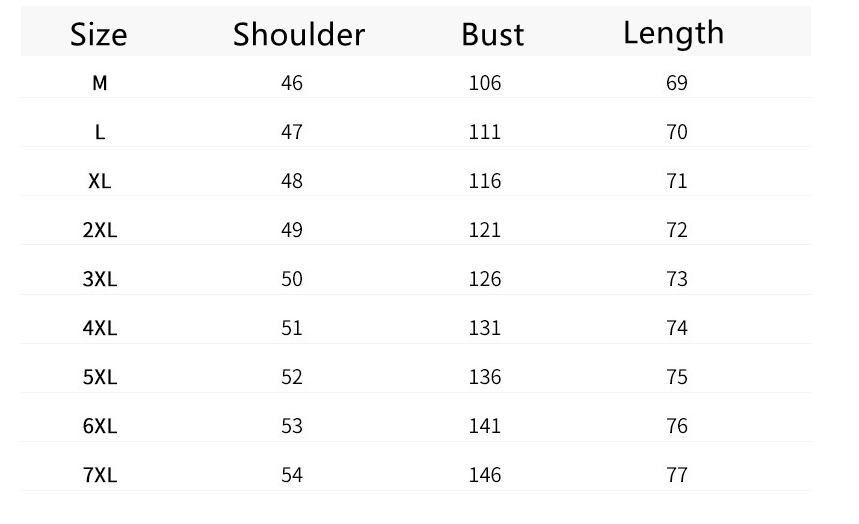 Size: M,L,XL,XXL, XXL,XXXXL,5XL,6XL,7XL