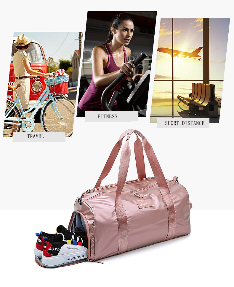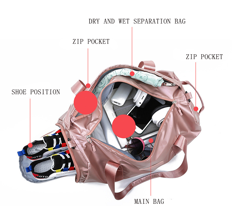 Structure: external zipper bag + shoe position + dry and wet separation bag + large space main bag