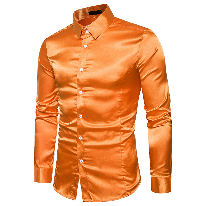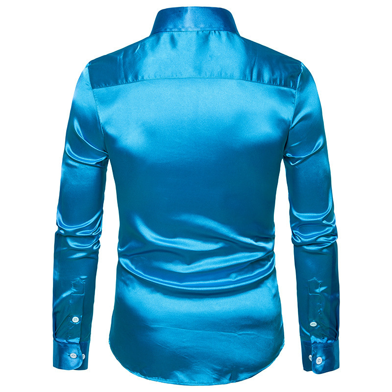 New Men's Casual Fashion Shiny Long Sleeve Shirts