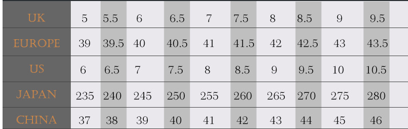 Size: 37, 38, 39, 40, 41, 42, 43, 44, 45, 46