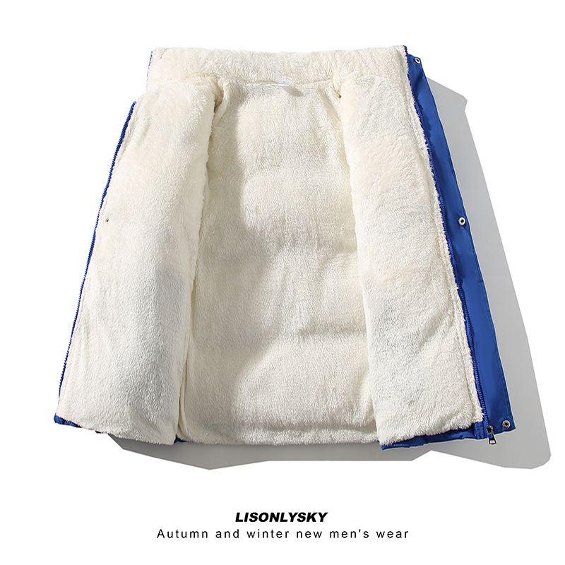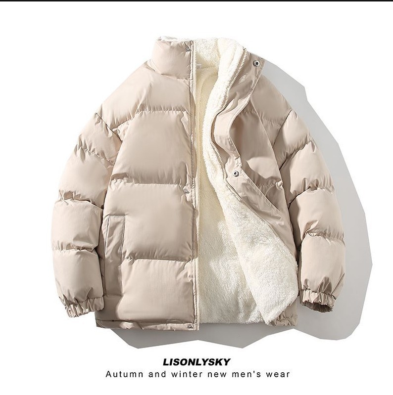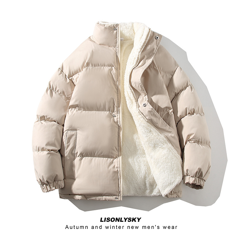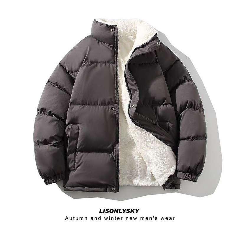 New Men's Fleece-lined Thickening Stand Collar Loose Plus Size Solid Color Warm Casual Jacket