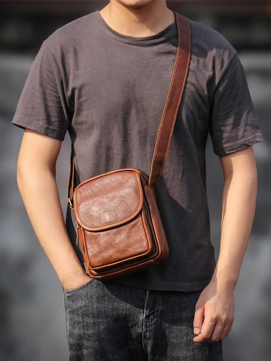 New Men's Genuine Leather Casual Crossbody Bag